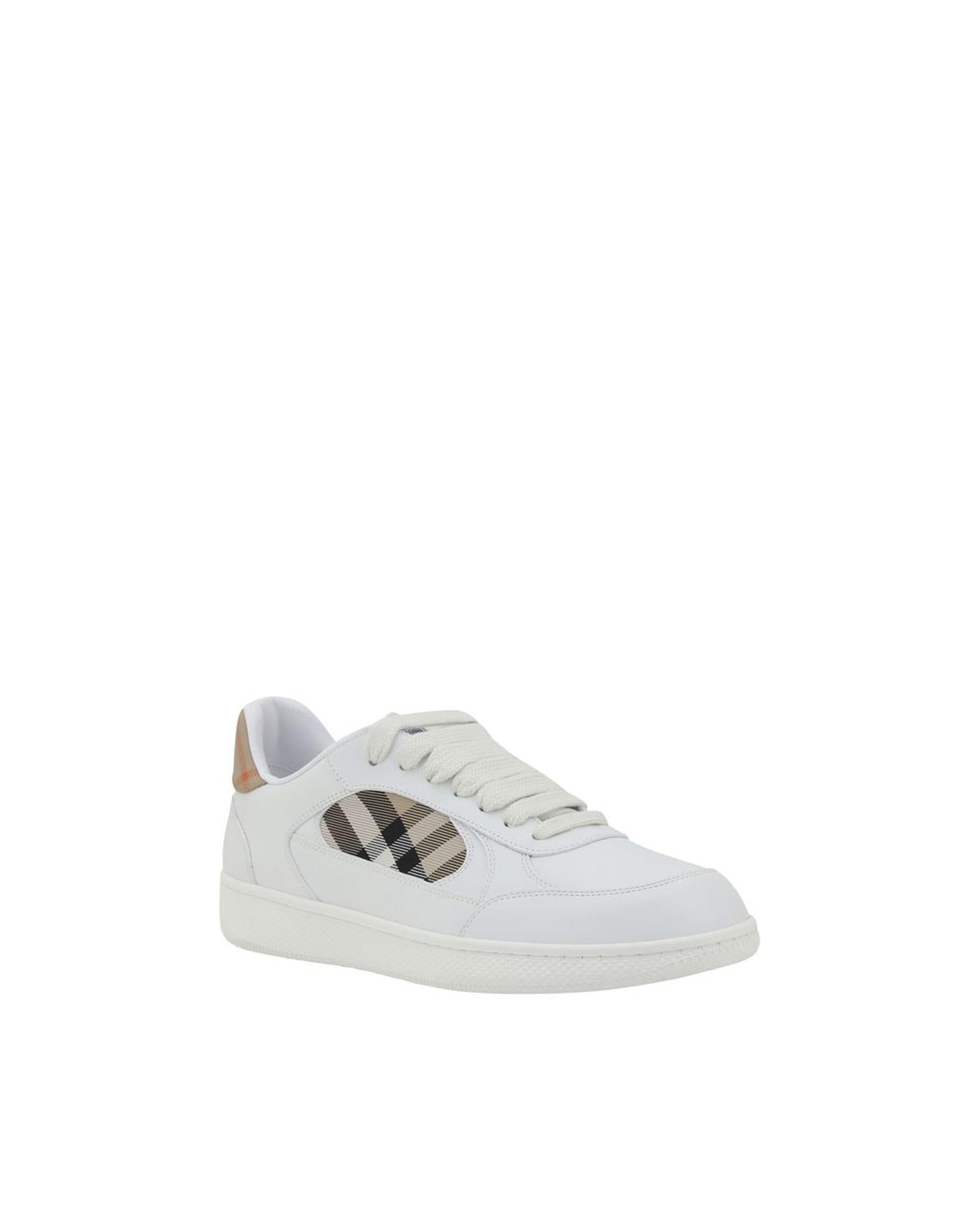 These Arthur leather sneakers offer a casual yet sophisticated look The clean white leather upper is accented by a subtle Burberry check detail adding a touch of luxury to this everyday essential Perfect for casual wear. Calf Leather Bos Taurus