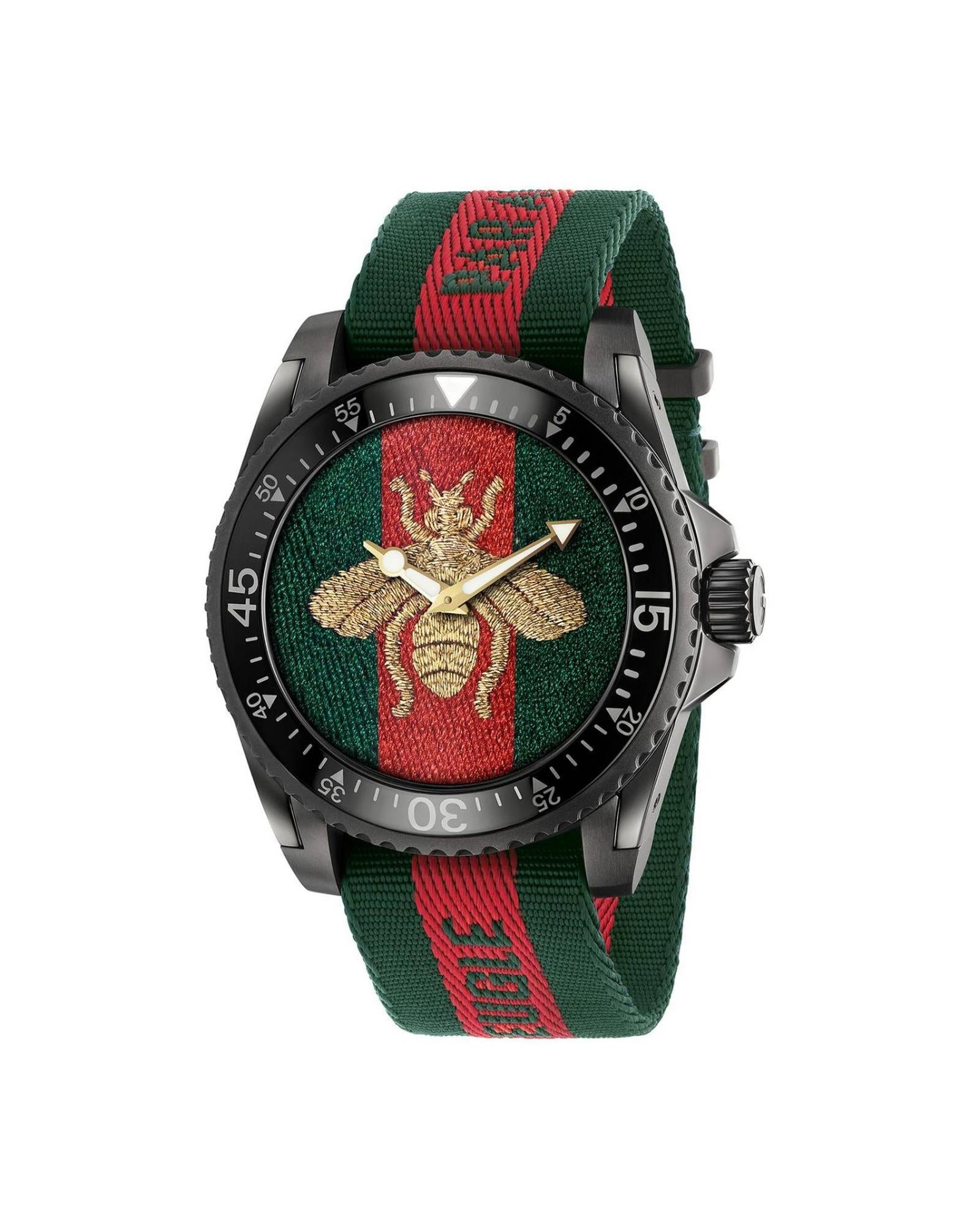 Gucci Dive Bee Embroidery Watch Men Green Watches