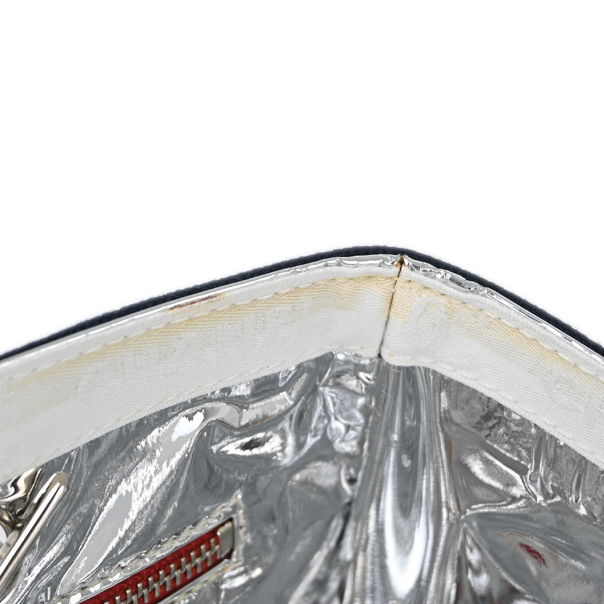 Chanel Navy Silver Canvas No.5 Choco Bar Tote Handbag