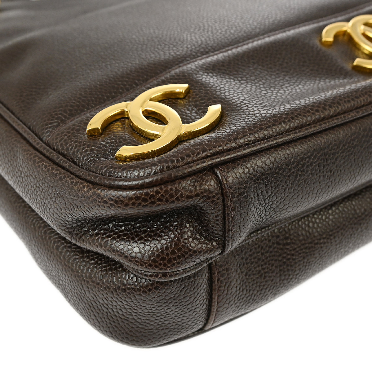 Chanel 1994-1996 Brown Caviar Triple CC Shoulder Tote Bag