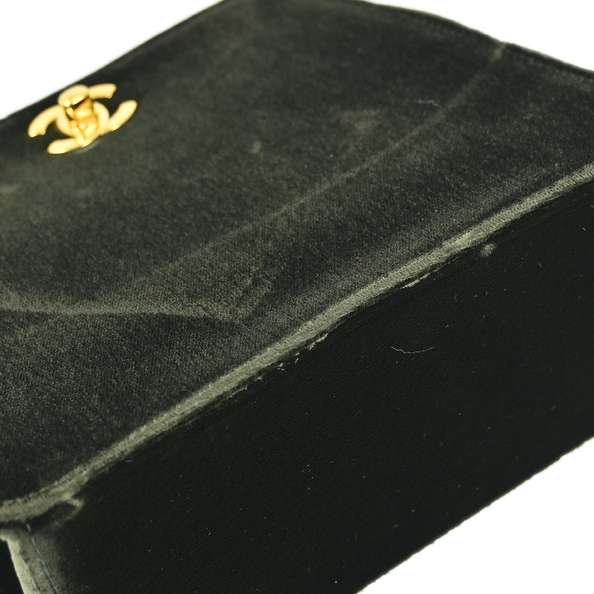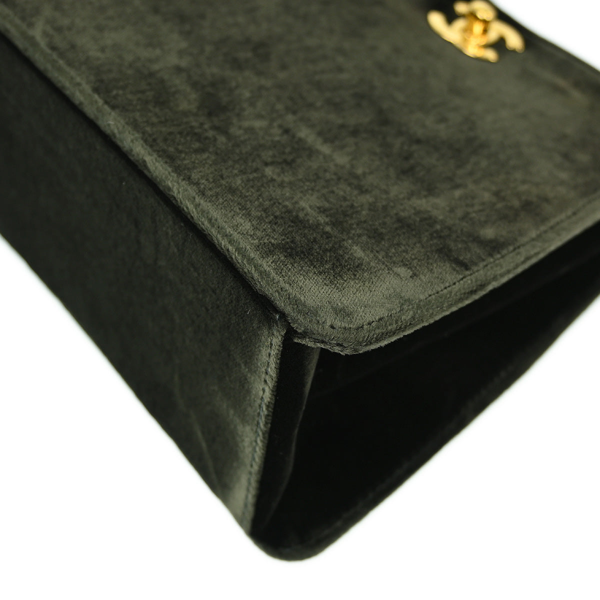 Chanel Green Velvet Double Sided Turnlock Handbag