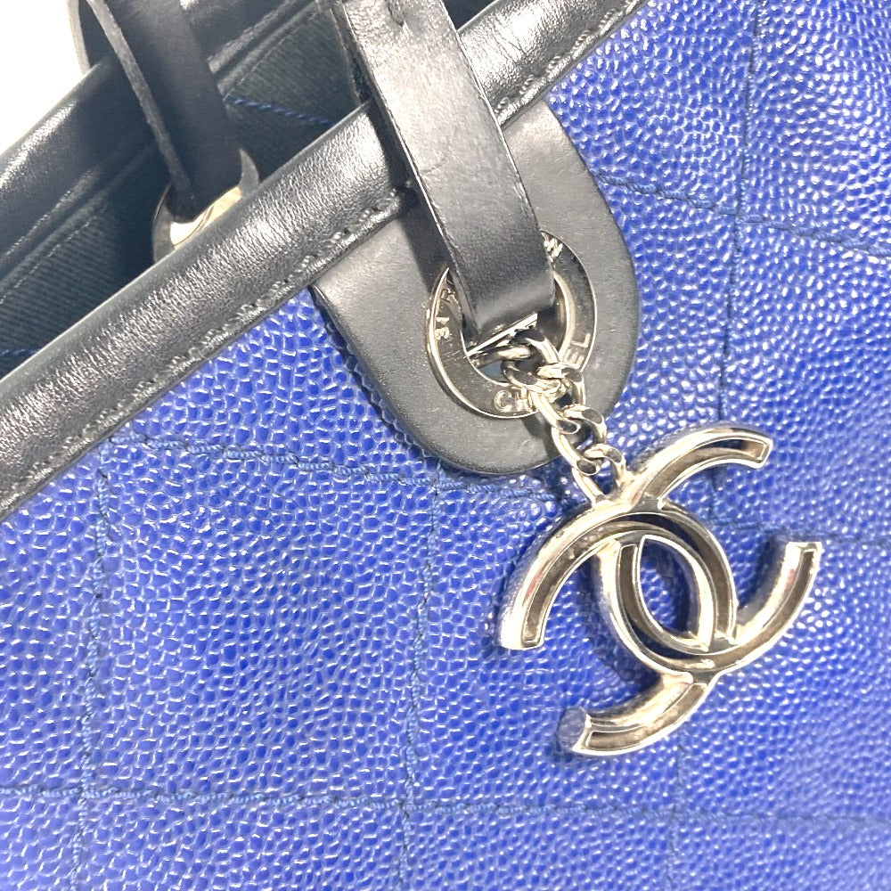 CHANEL Tote Bag Caviar skin Navy Comes with CC charm Matrasse quilting Women Used