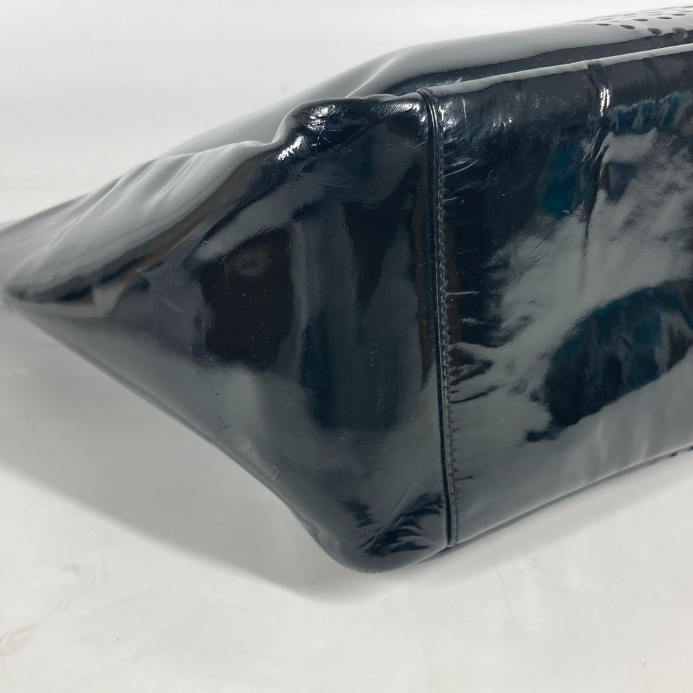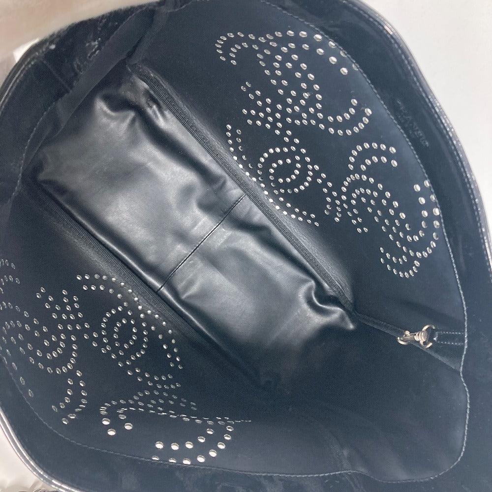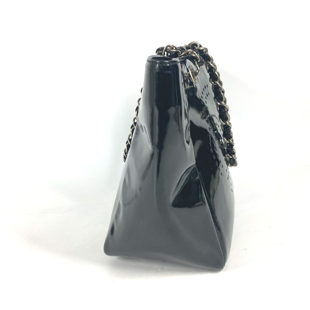CHANEL Tote Bag enamel black Triple Coco punching logo CC COCO Mark Women Used