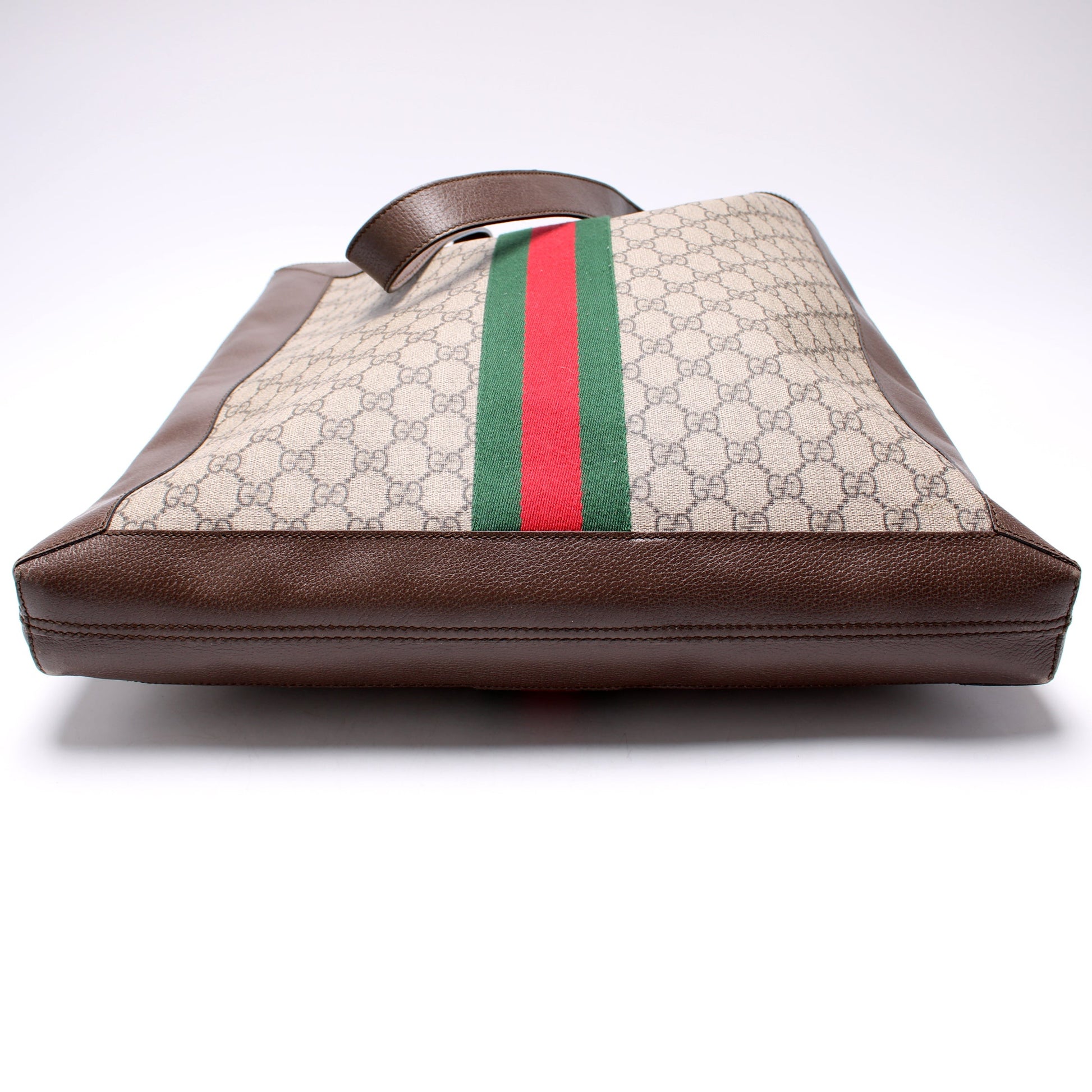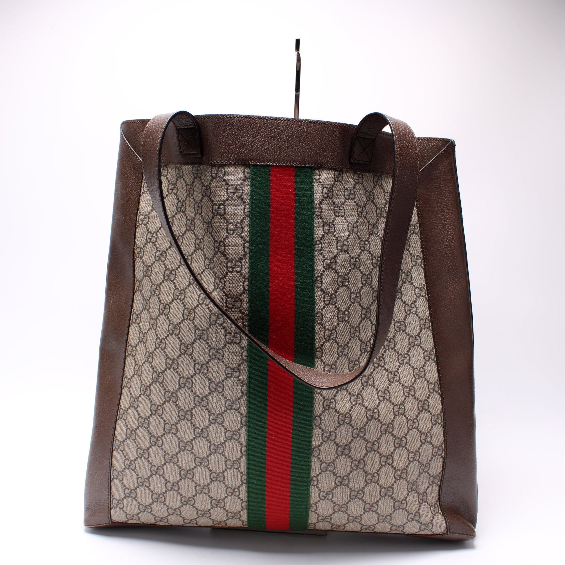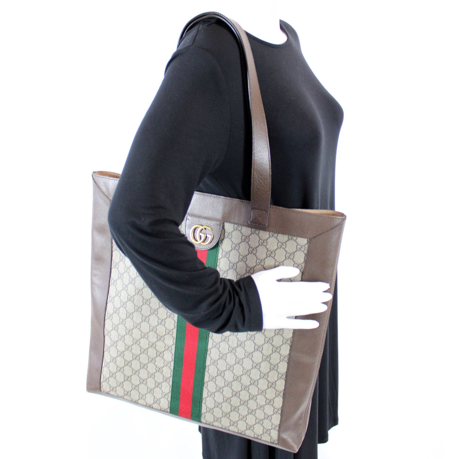 This Gucci Ophidia Soft GG Supreme Large Tote is The exterior is in the classic Gucci GG Supreme coated canvas.