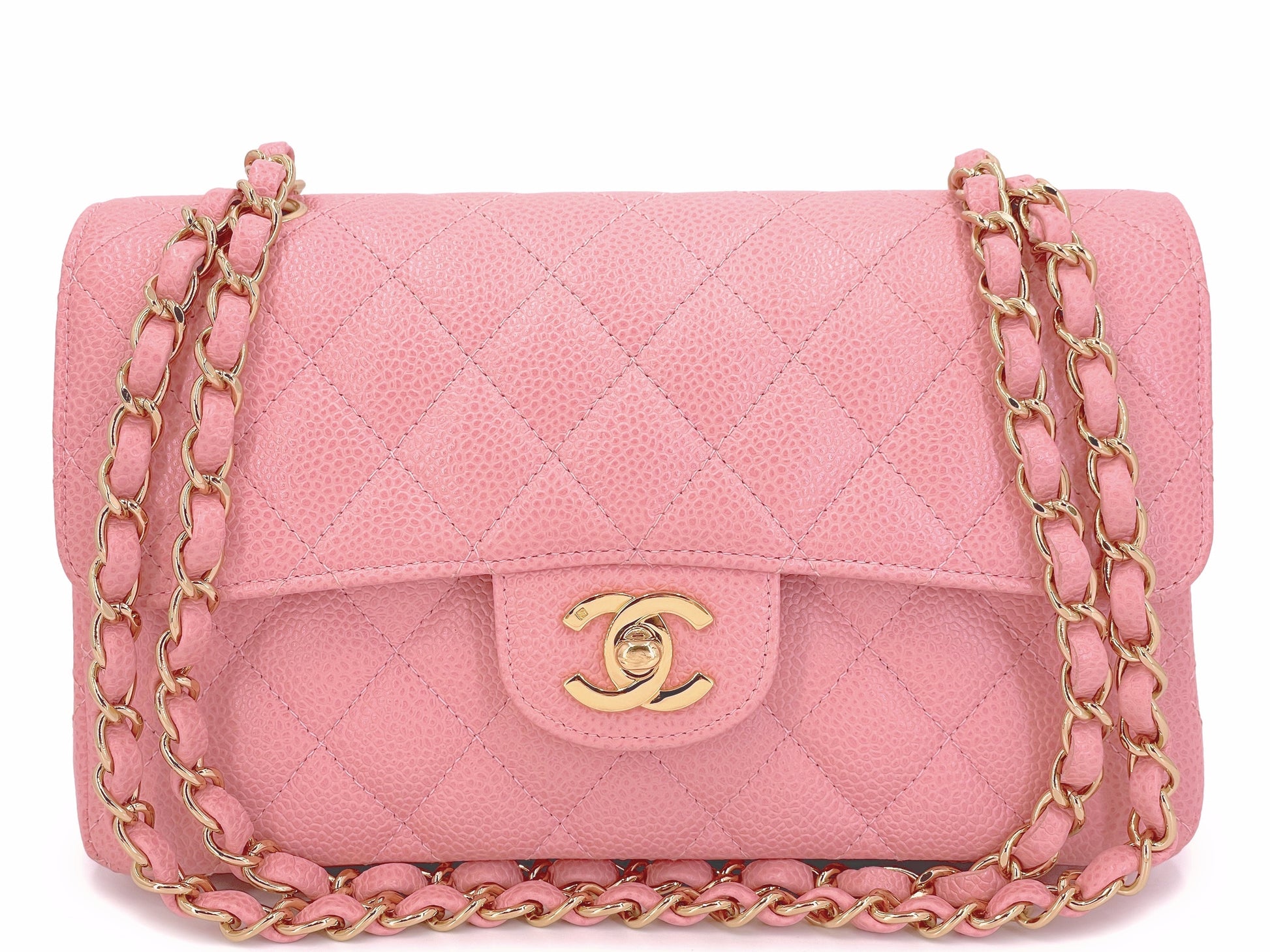 Chanel 2005 Vintage Sakura Pink Small Classic Double Flap Bag 24k GHW