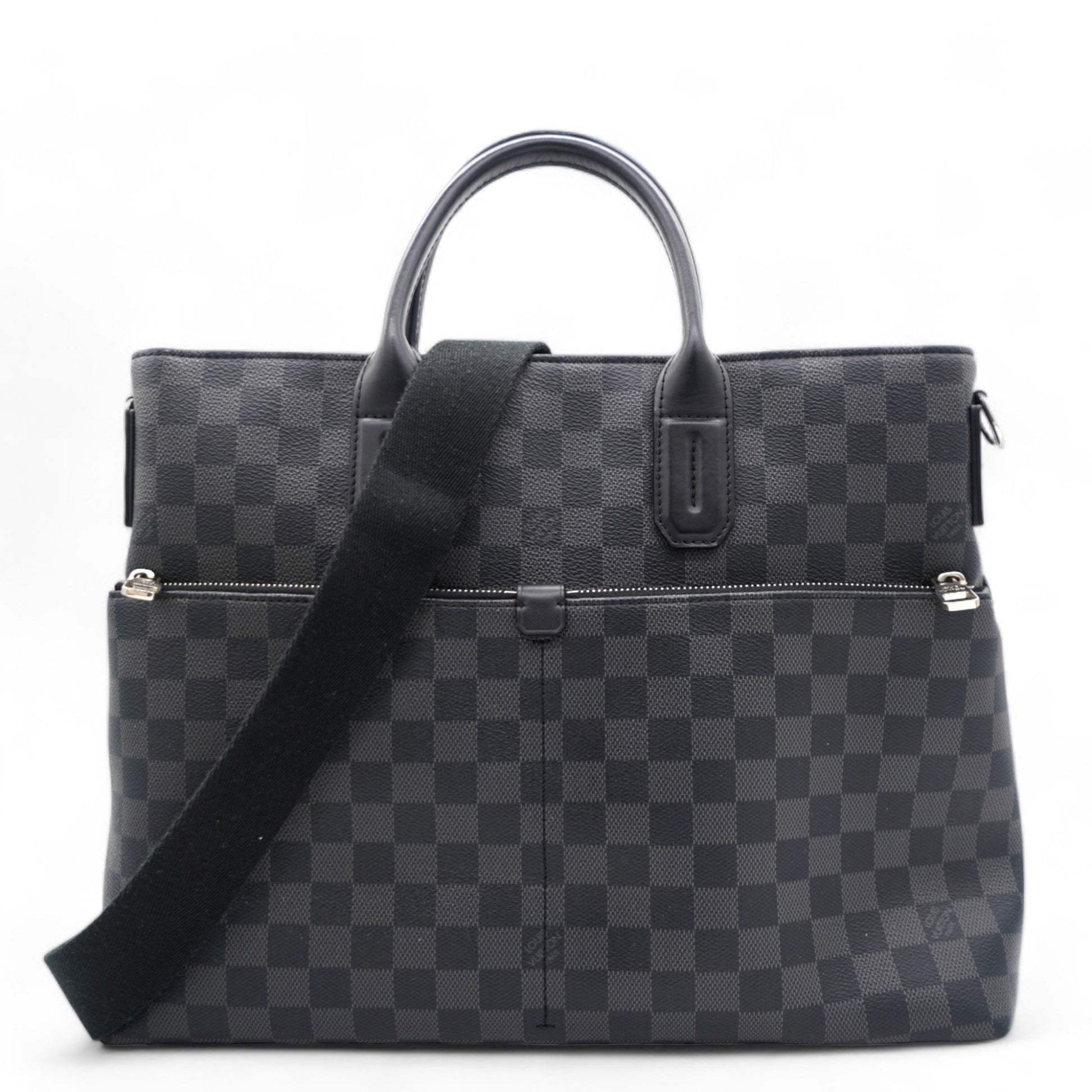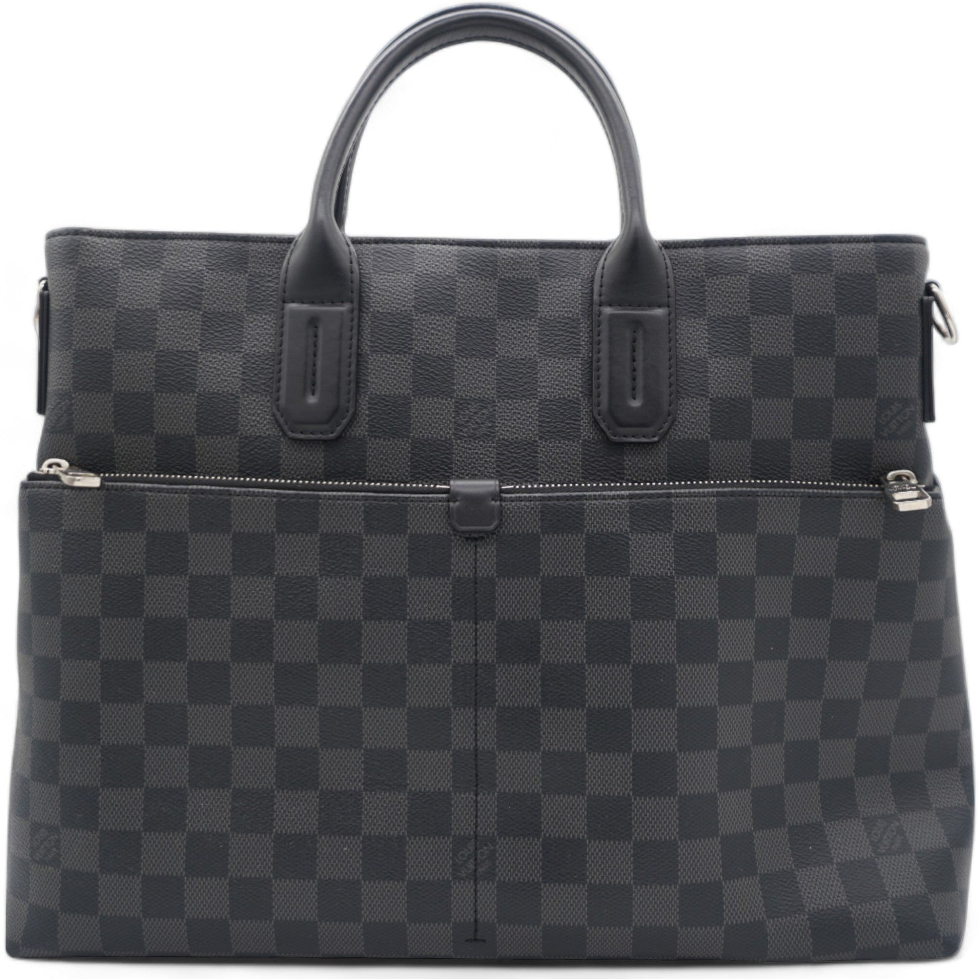 This shoulder bag is crafted of classic Louis Vuitton Damier Graphite patterned canvas featuring black cowhide rolled leather top handles, two exterior zipper pockets, an adjustable shoulder strap and complimentary silver hardware. A top zipper opens to a black fabric interior with patch pockets. This is the ideal tote bag for everyday use, from Louis Vuitton! Material Canvas Lining Textile Hardware Silver color finish metal Accessories - Louis Vuitton Dust Bag - Louis Vuitton Box - Louis Vuitton Receipt Measurement W 37.0 cm H 29.0 cm D 8.0 cm Handle 9.0 cm Drop Shoulder Strap 46.0 cm -64.0 cm Drop Removable Serial Number Fo0167 Production Year 2017