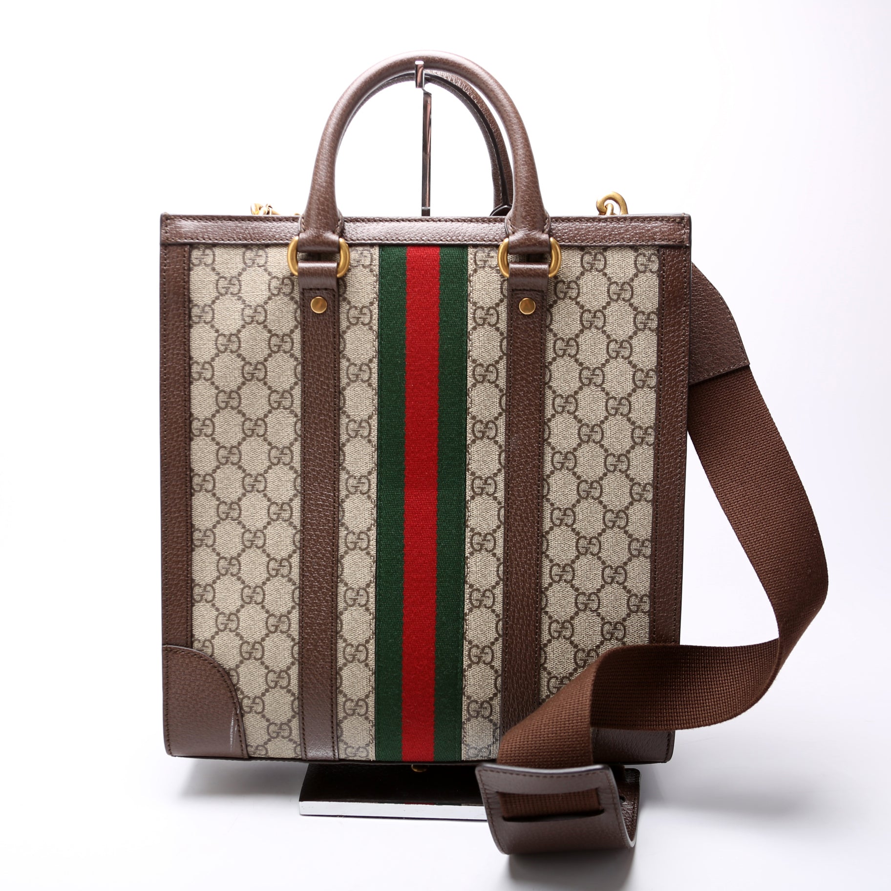 This Gucci Ophidia Medium Tote is The exterior is in the classic Gucci GG Supreme coated canvas.