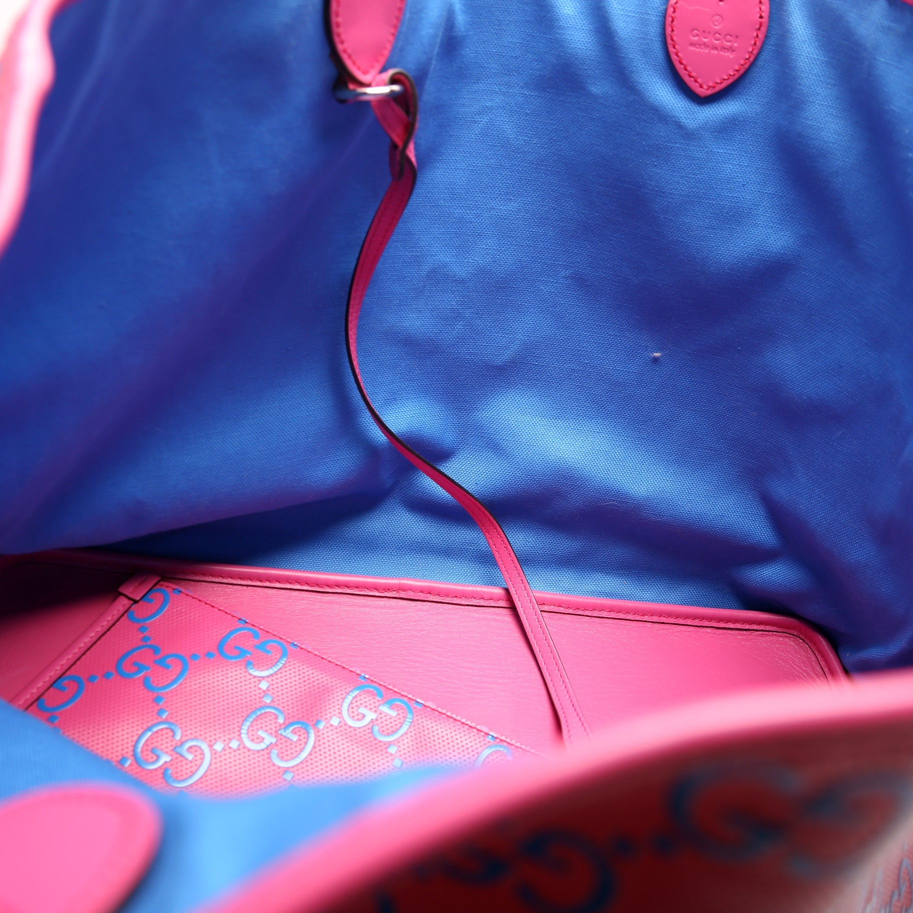 This Gucci Embossed Large Tote is The exterior is in the Embossed Gucci leather.