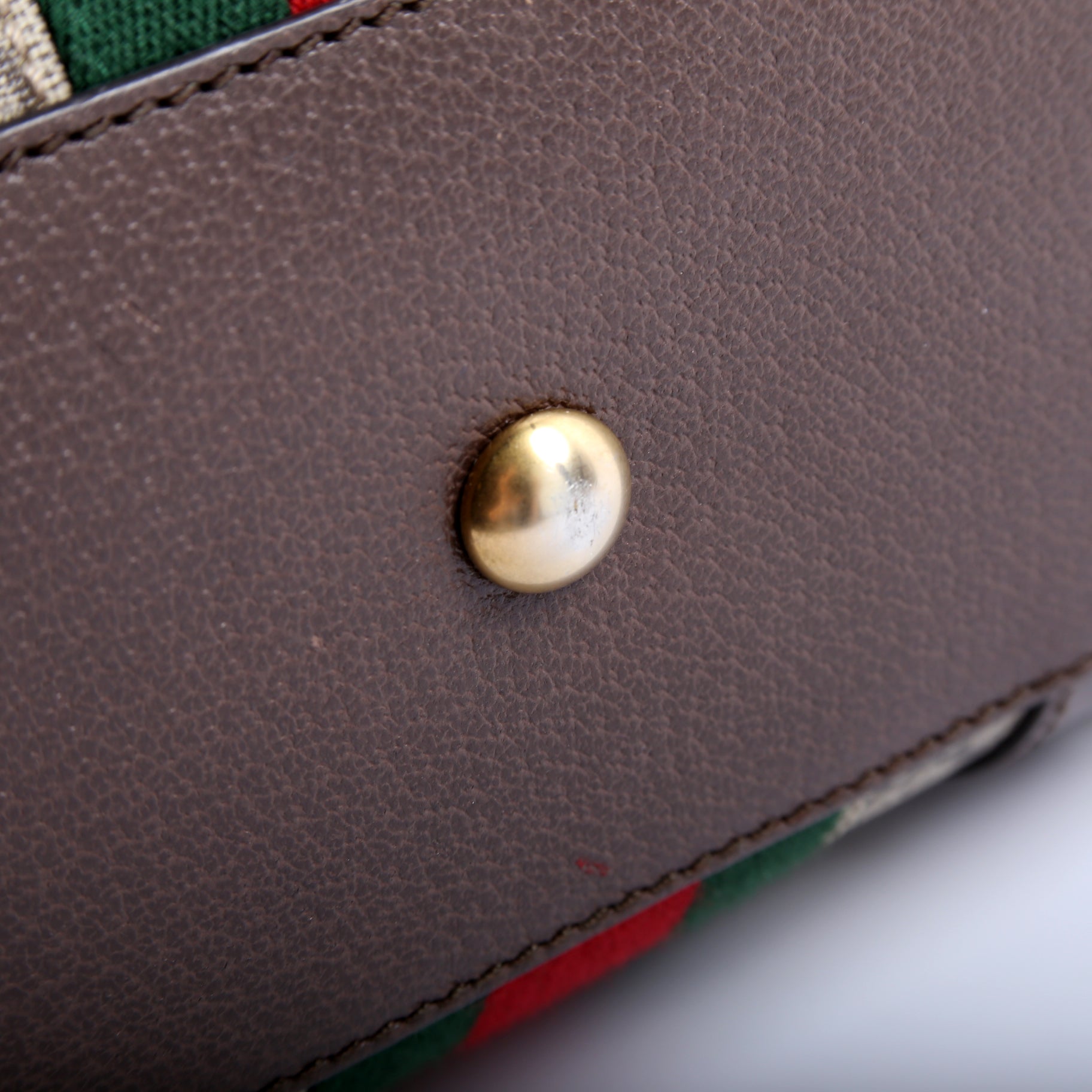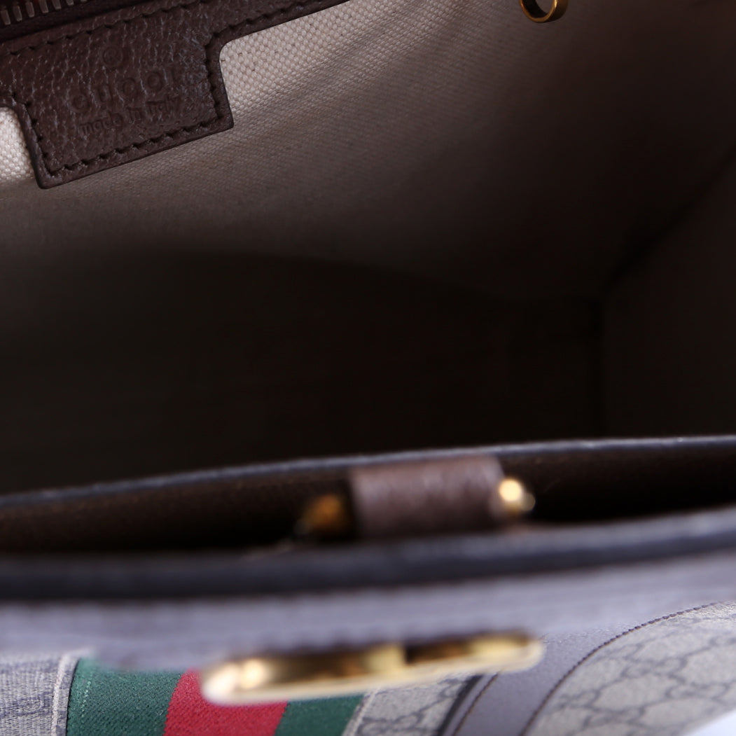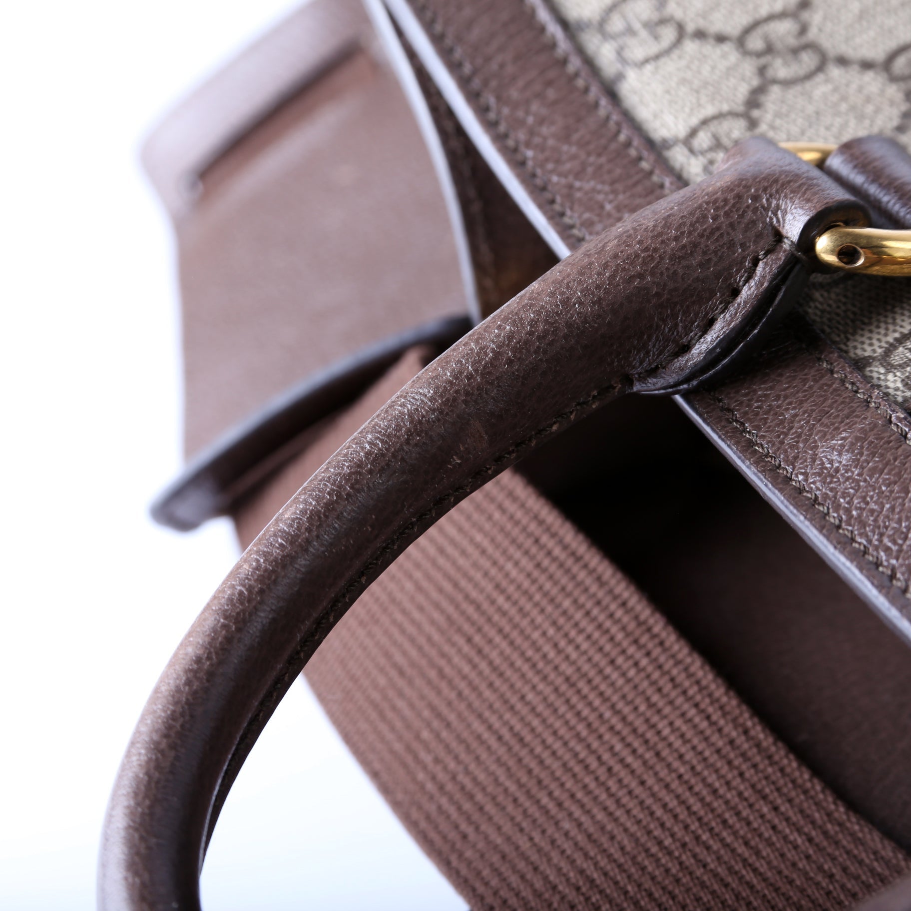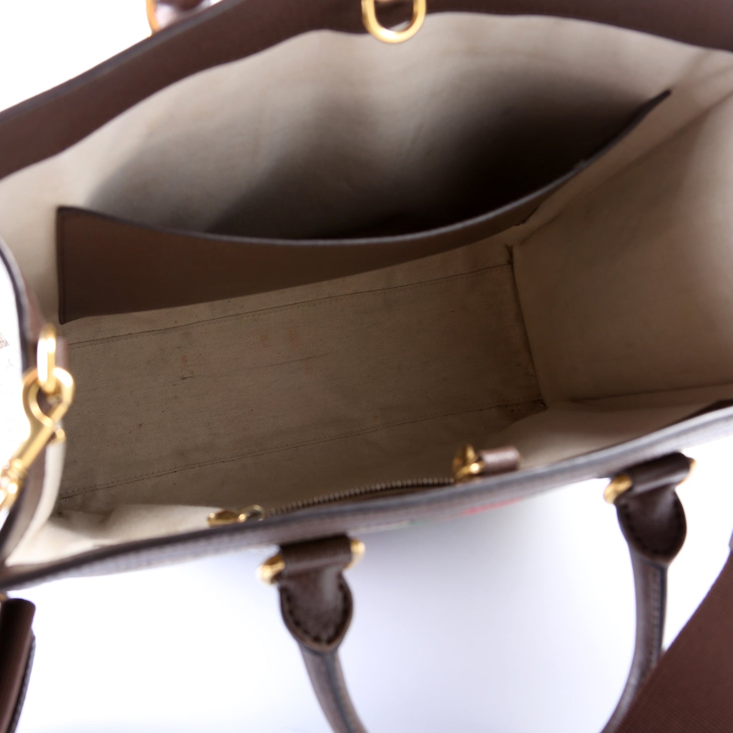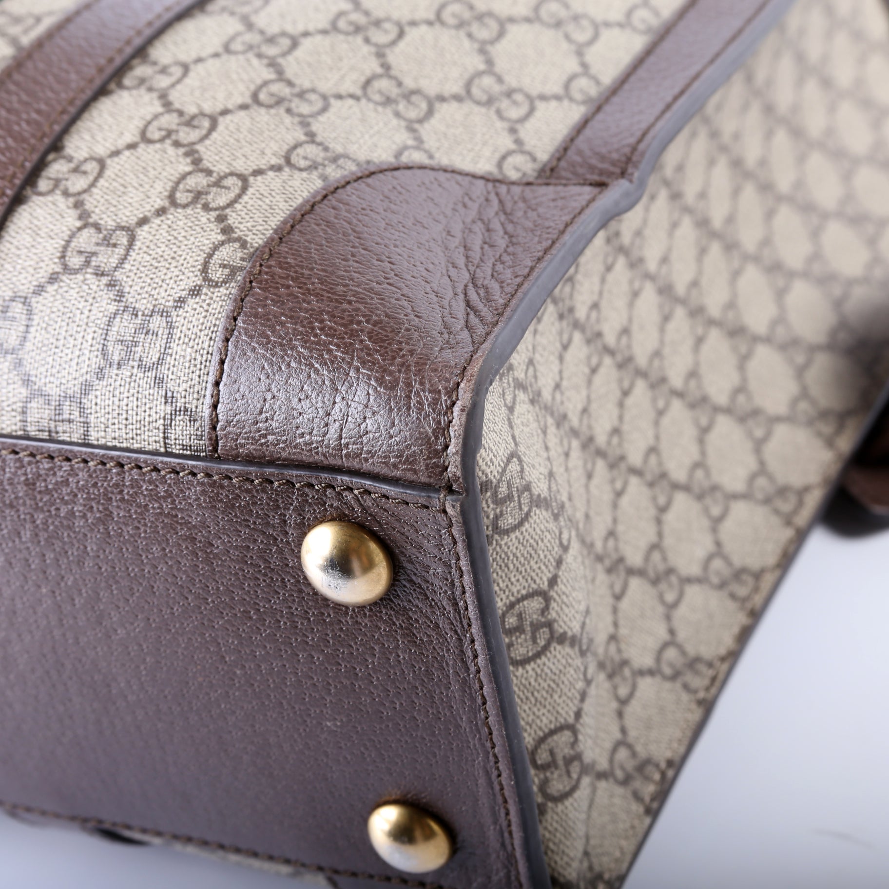 This Gucci Ophidia Medium Vertical Tote is The exterior is in the classic Gucci GG Supreme coated canvas.