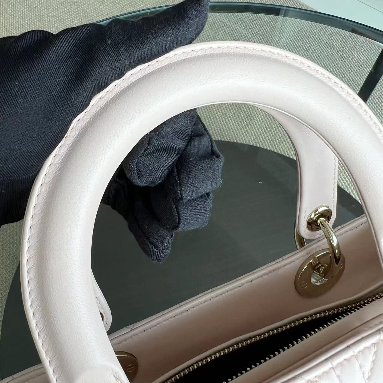 *Adjustable Strap* Lady Medium Cannage Lambskin Sakura Pink Golden Hardware