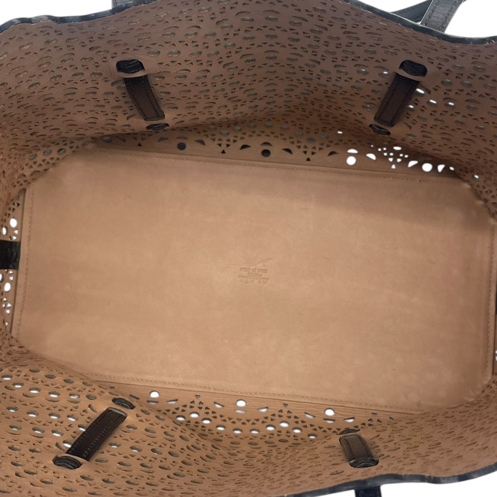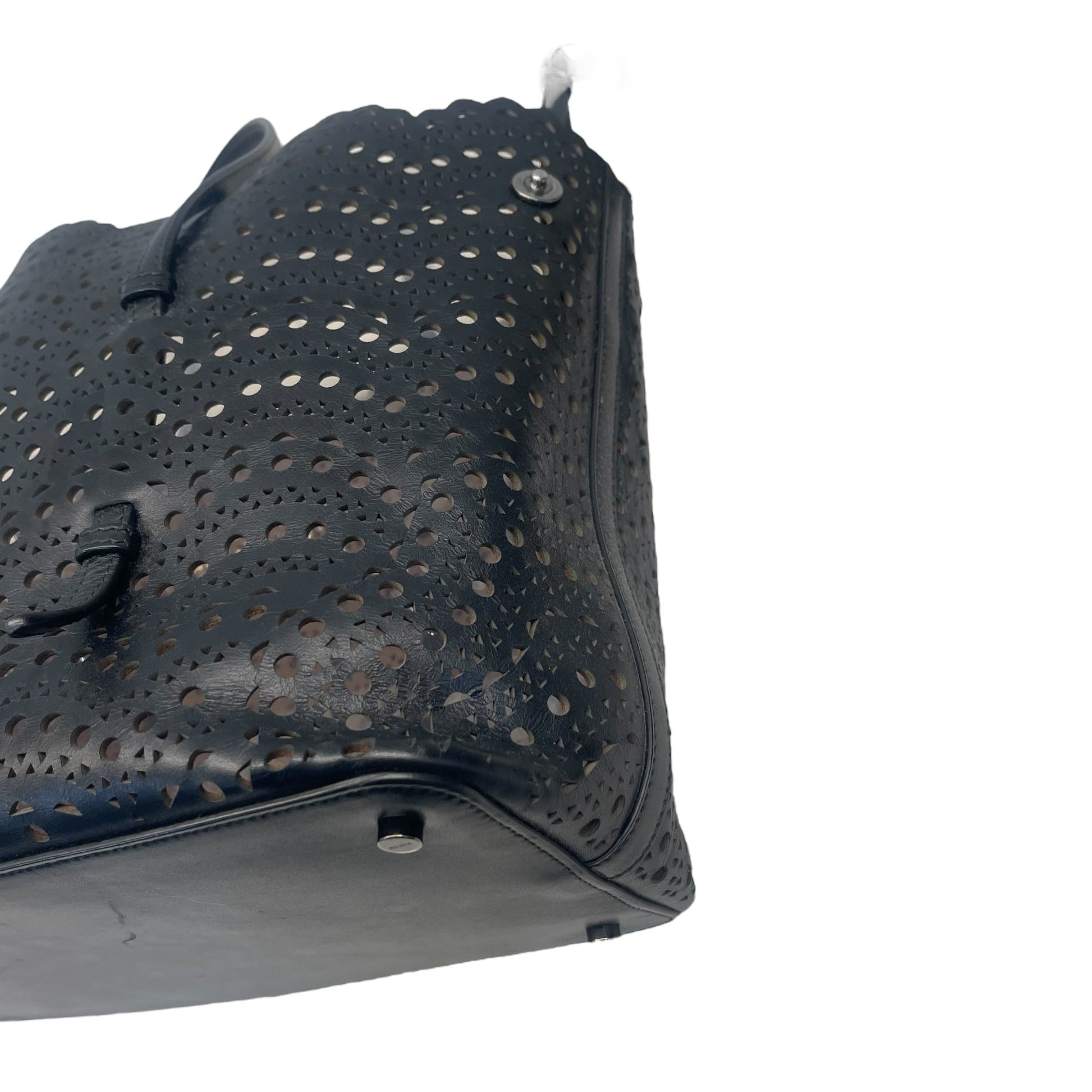 Alaia Black Leather Laser Cut Mina Tote Bag