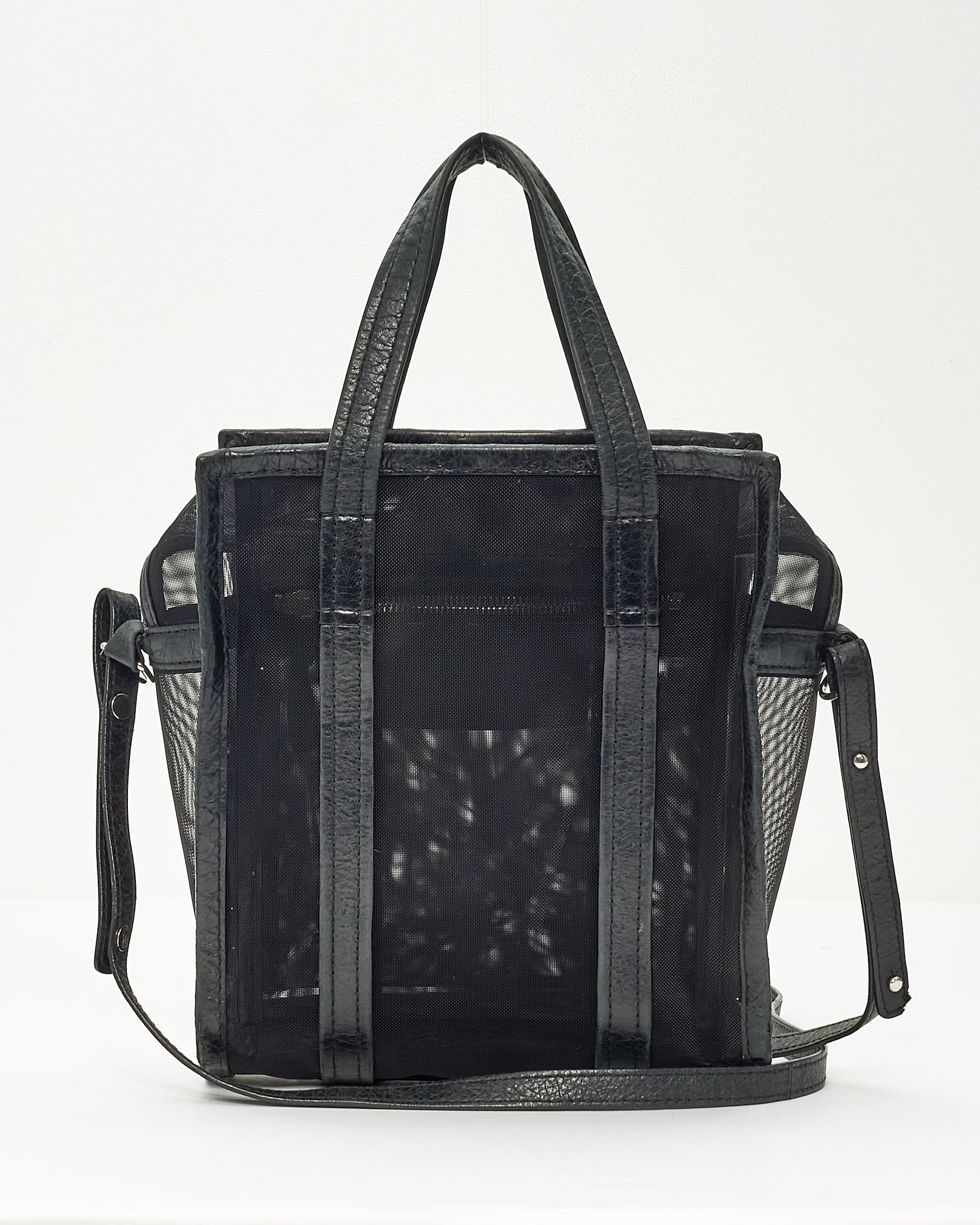 Balenciaga Black Mesh & Leather S Shopper Tote Bag
