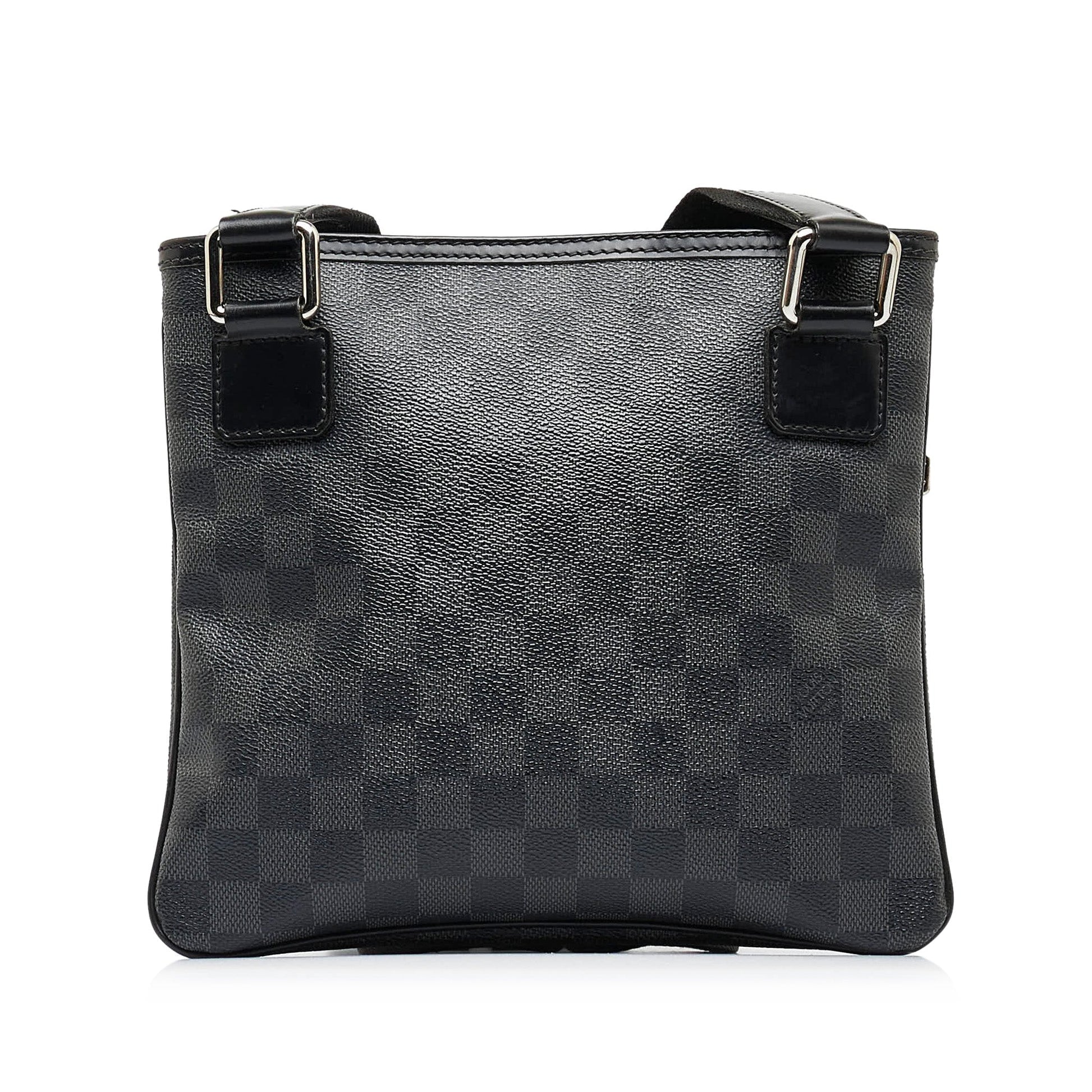 Product Details: Black Louis Vuitton Damier Graphite Thomas . The Thomas features a damier body, a front exterior zip pocket, an adjustable flat strap, a top zip closure, and an interior slip pockets. 9.1" L x 9.8" W x 0.4" D. Serial number VI4170.