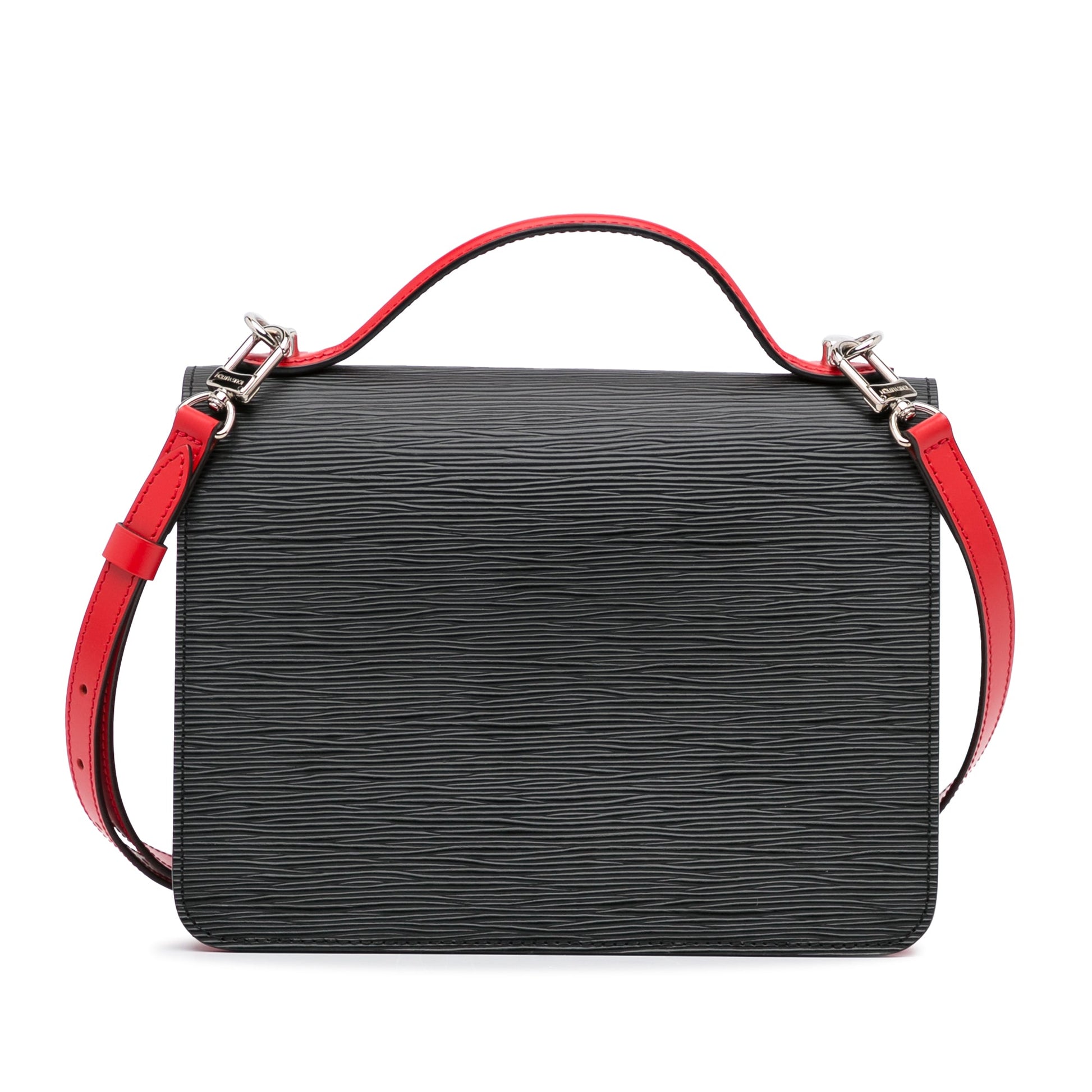 Product Details: Black Louis Vuitton Epi Neo Monceau Satchel. The Monceau features an epi leather body, a flat leather top handle, a detachable flat strap, a front flap with push lock closure, an exterior pocket under the flap, and an interior zip pocket. 9.8" L x 7.3" W x 3.3" D, 2" drop. Serial number SR4109.