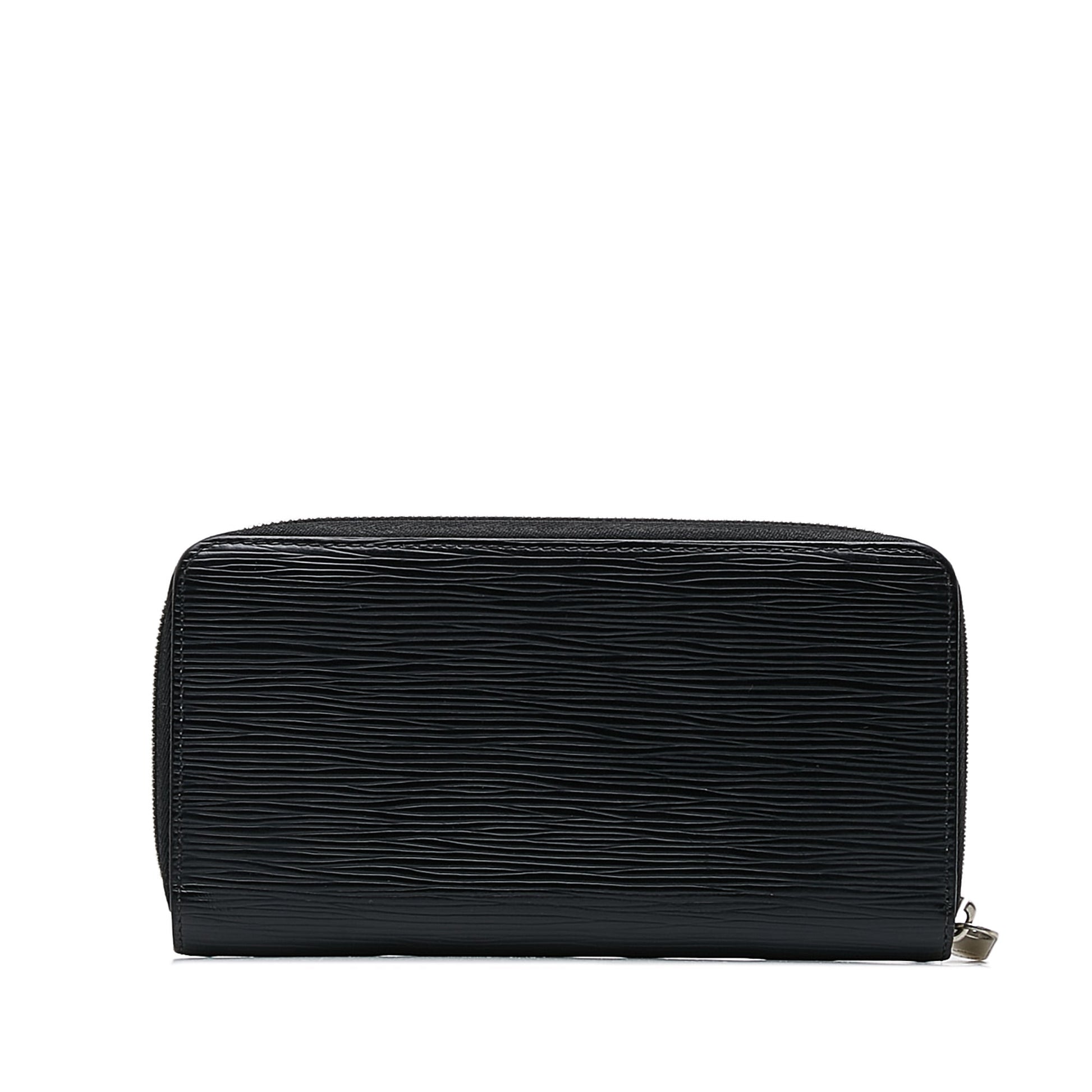 Product Details: Black Louis Vuitton Epi Zippy Long Wallet. This long wallet features an epi leather body, a zip around closure, and interior zip and slip compartments. 4.1" L x 7.5" W x 1" D. Serial number CA2107.