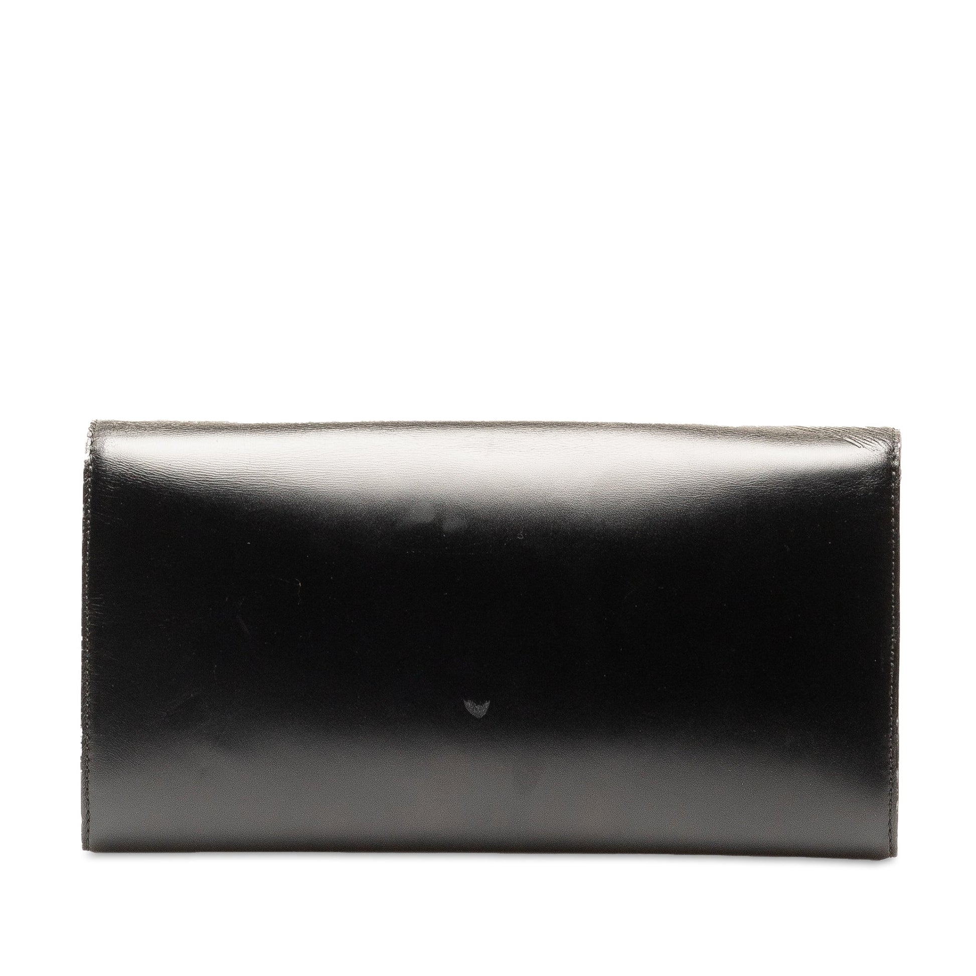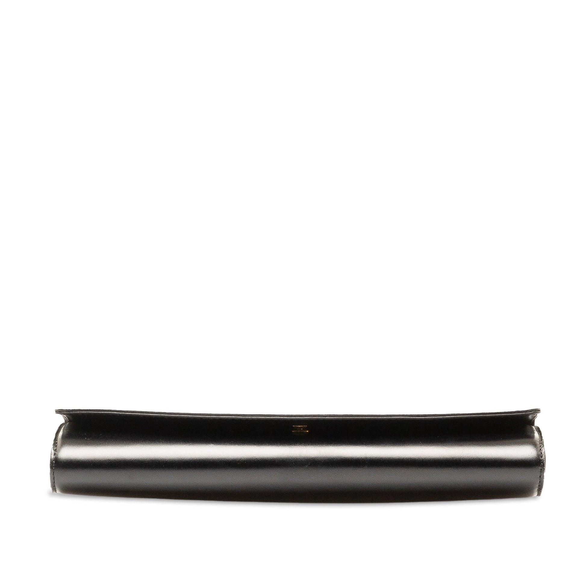Product Details: Black Louis Vuitton Opera Aegean Clutch. The Opera Aegean features a leather body, a front flap, and an interior zip pocket. 5.9" L x 10.6" W x 1.4" D. Serial number MI0901.