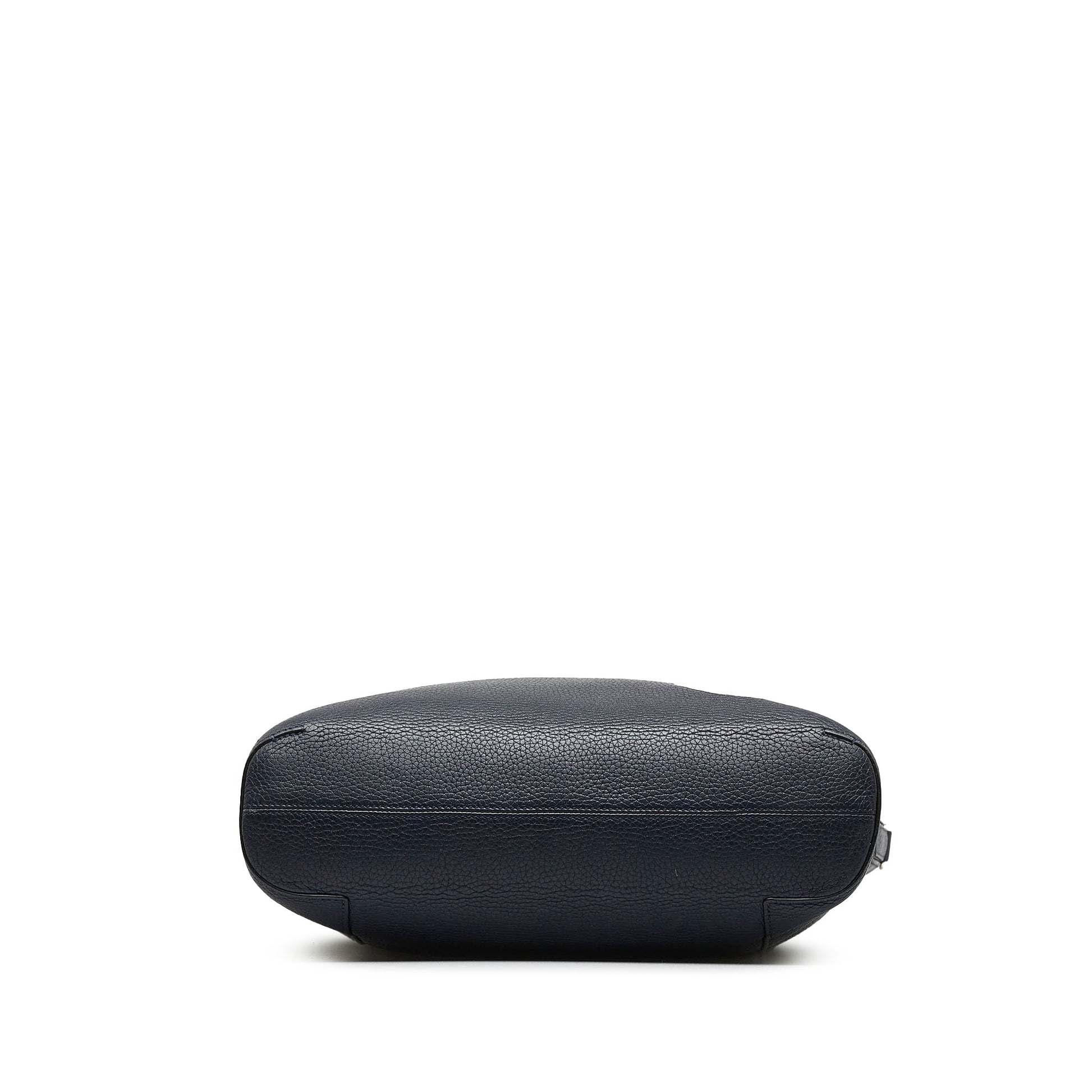 Product Details: Blue Louis Vuitton Taurillon East Side Tote MM Satchel. The East Side Tote features a leather body, flat handles, a detachable monogram strap, a top zip closure, and interior zip and slip pockets. 15.7" L x 13.8" W x 3.9" D, 4.3" drop. Serial number RI1187.
