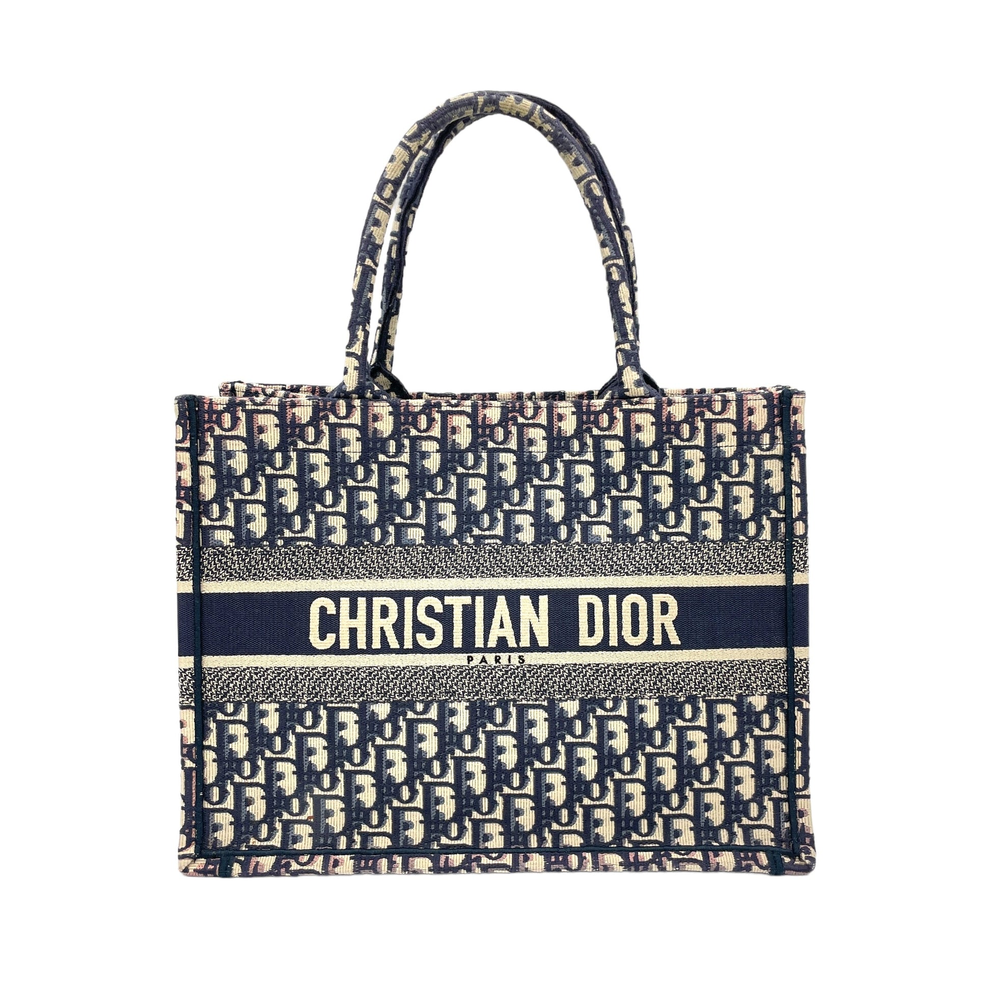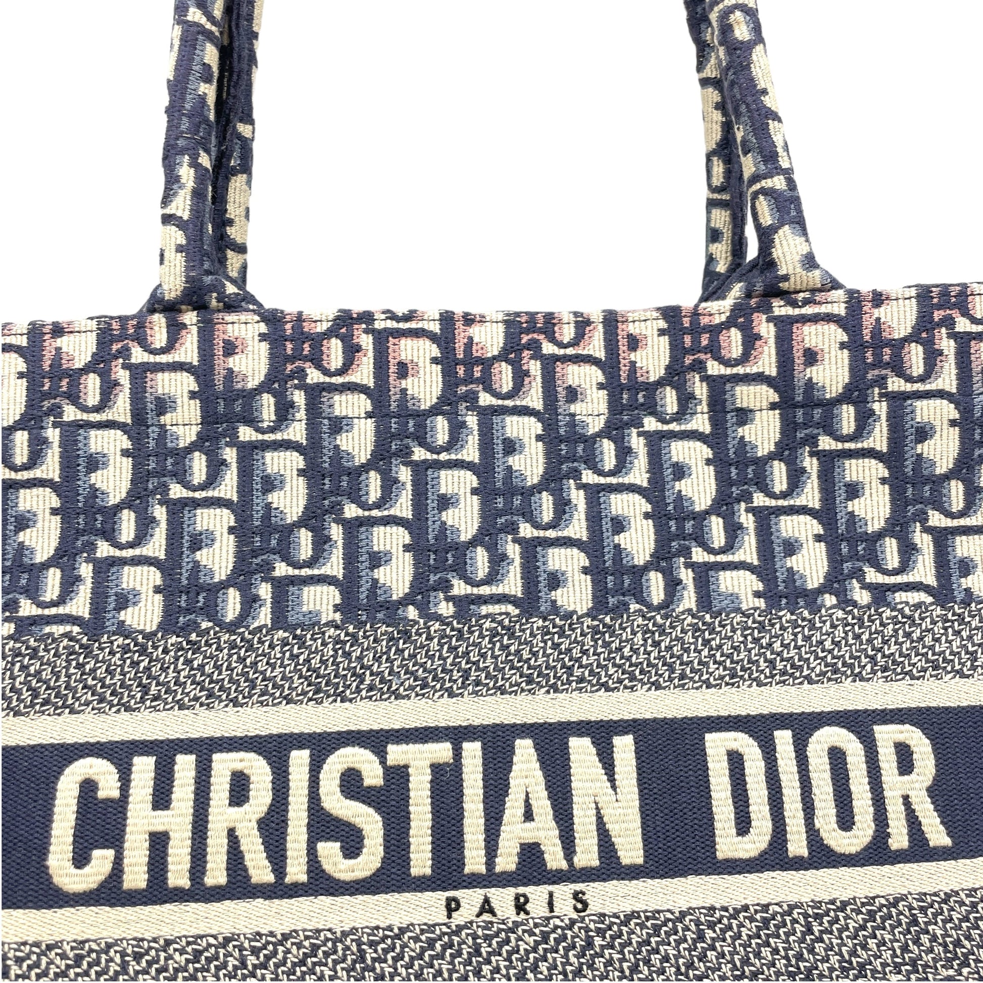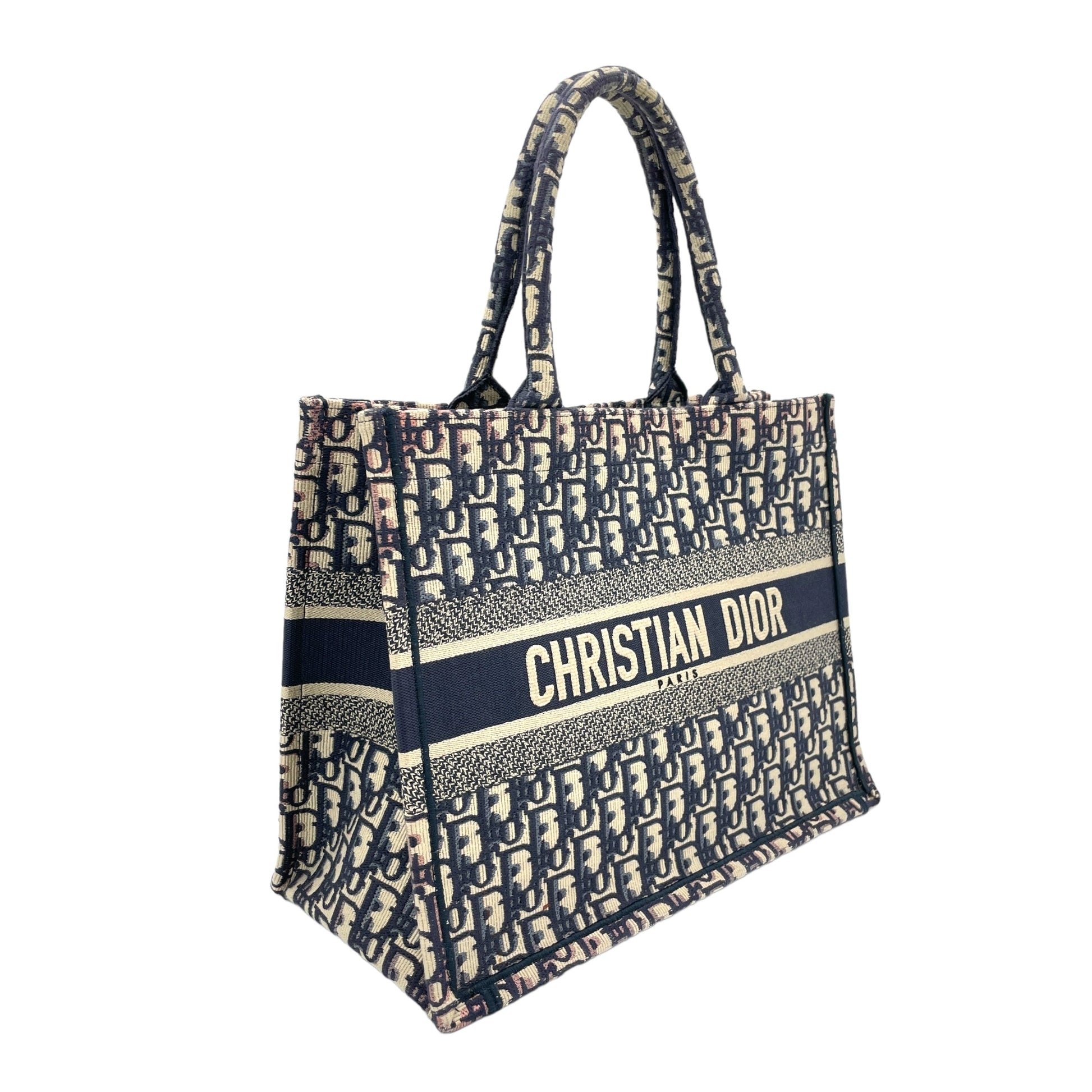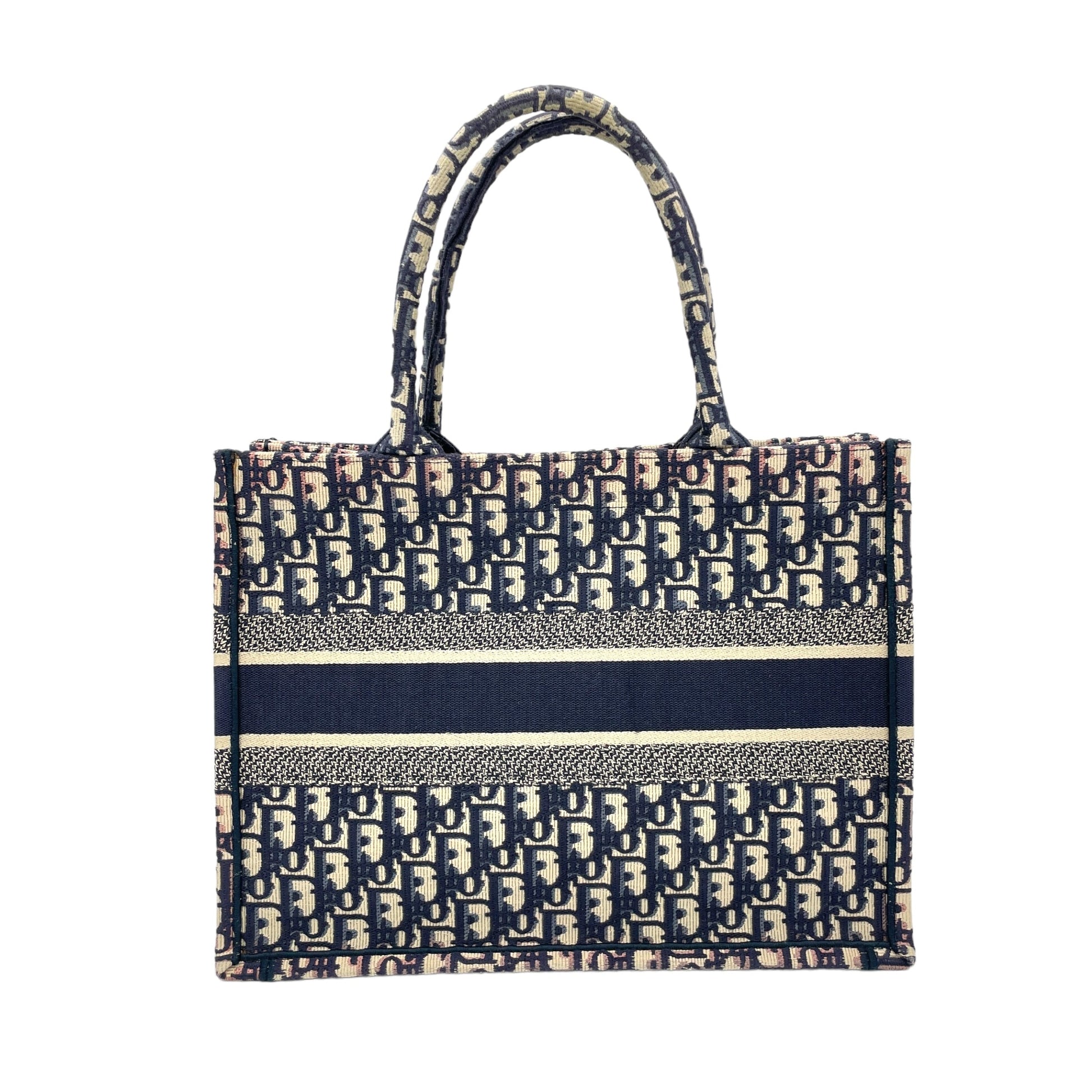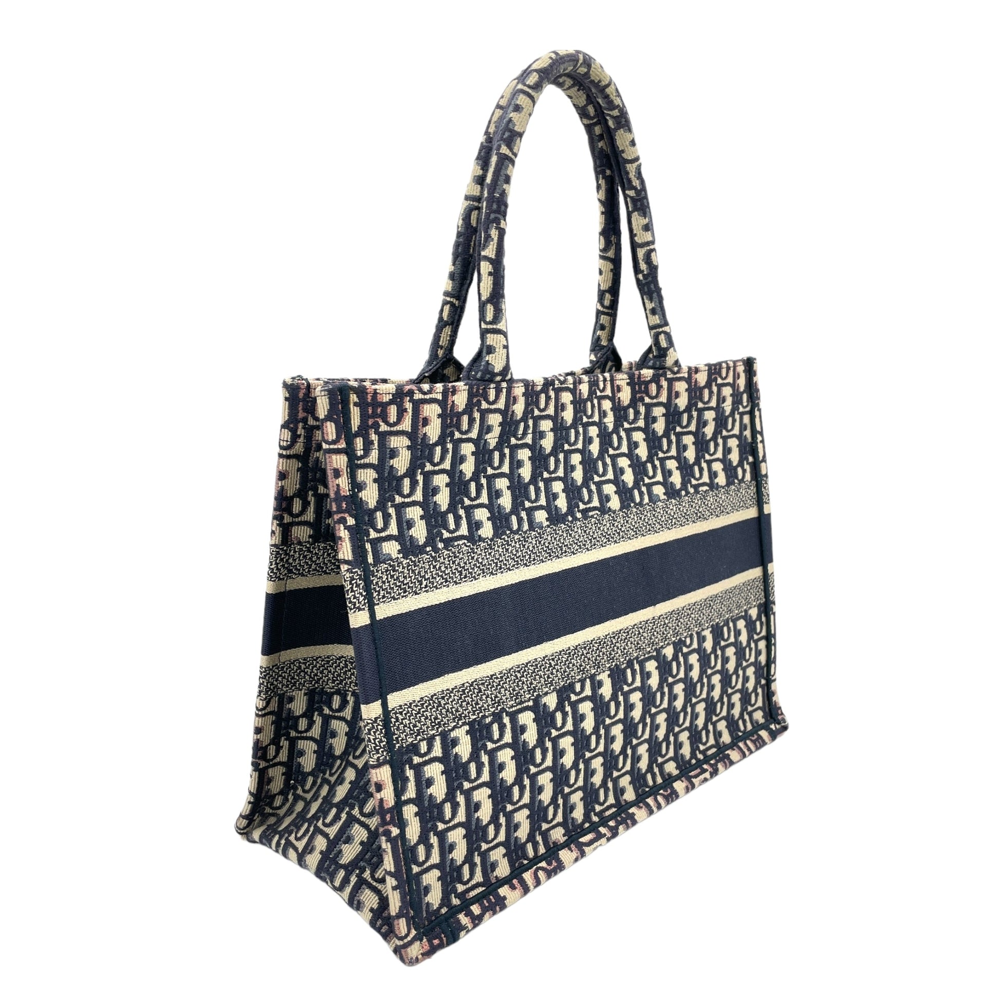 Book Tote Medium Navy Top handle Bag in Jacquard