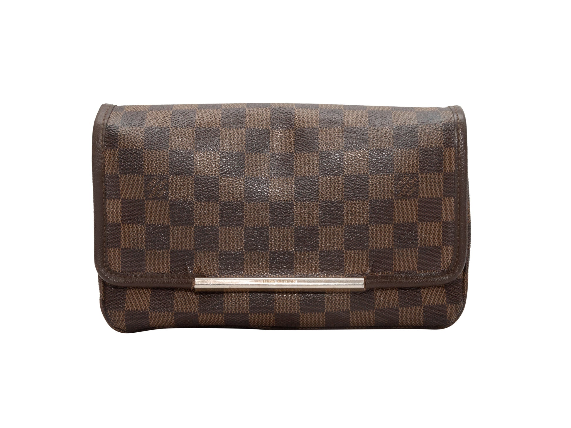 Product Details: Brown Louis Vuitton Damier Ebene Hoxton PM Crossbody Bag. The Hoxton PM Crossbody Bag features a coated canvas body, gold-tone hardware, an exterior back zip pocket, a single flat crossbody strap, and a front flat closure. 10" L x 6.25" H x 2" D, 21" shoulder strap drop.