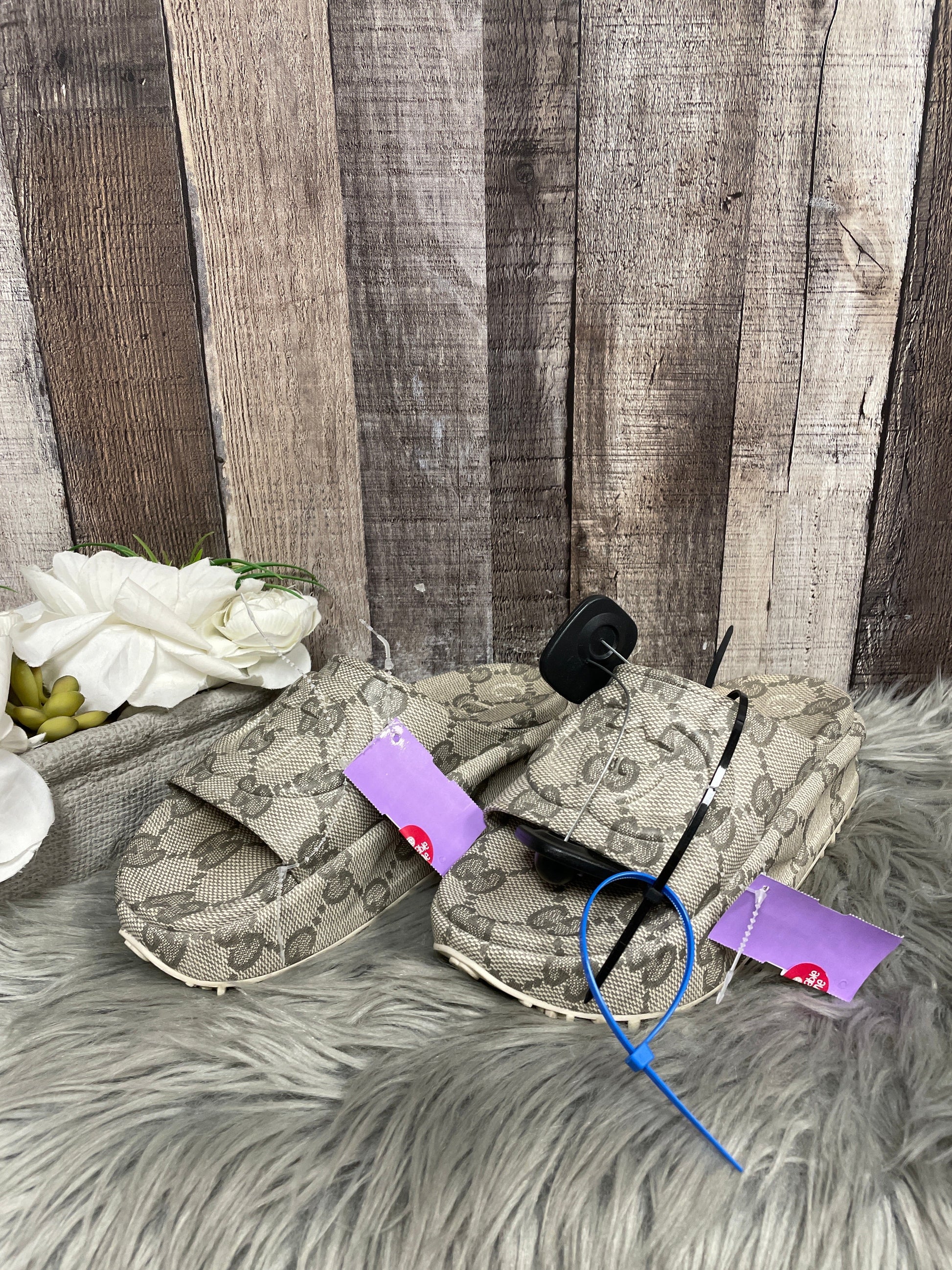 Other Info: SLIDE SANDAL WITH INTERLOCKING G