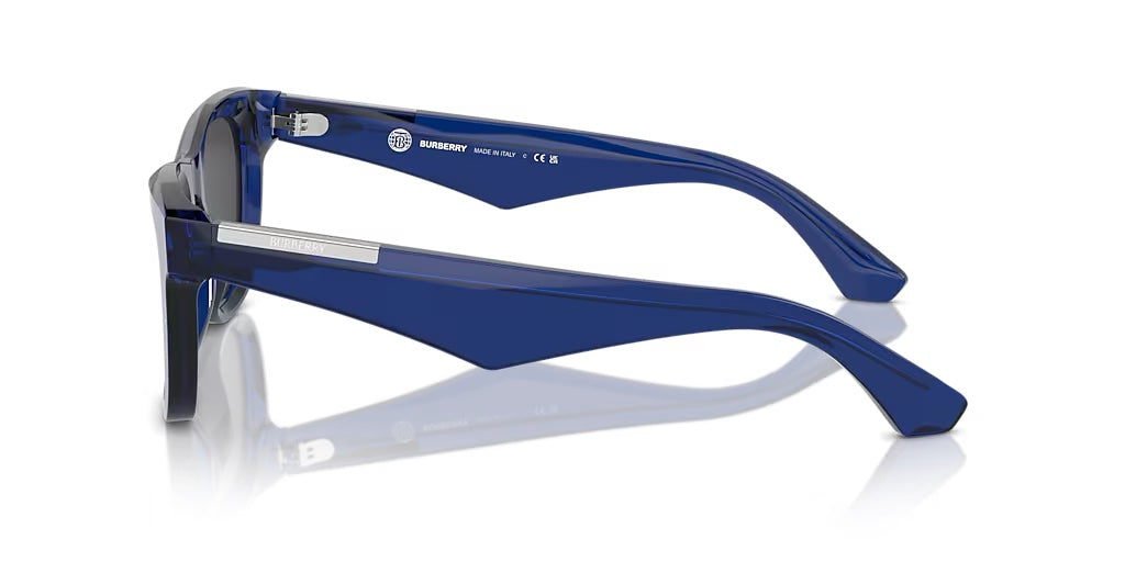 The solid dark grey lenses exude sophistication, while the square shape and polished Blue frame add a touch of contemporary flair. Crafted from premium acetate material, these shades promise durability and longevity for years to come. Elevated by the iconic check pattern on the temple tips, this design embodies timeless elegance that seamlessly integrates with any outfit or occasion. Embrace a fusion of tradition and modernity with Burberry BE4426 sunglasses, where heritage meets contemporary aesthetics in every frame.
