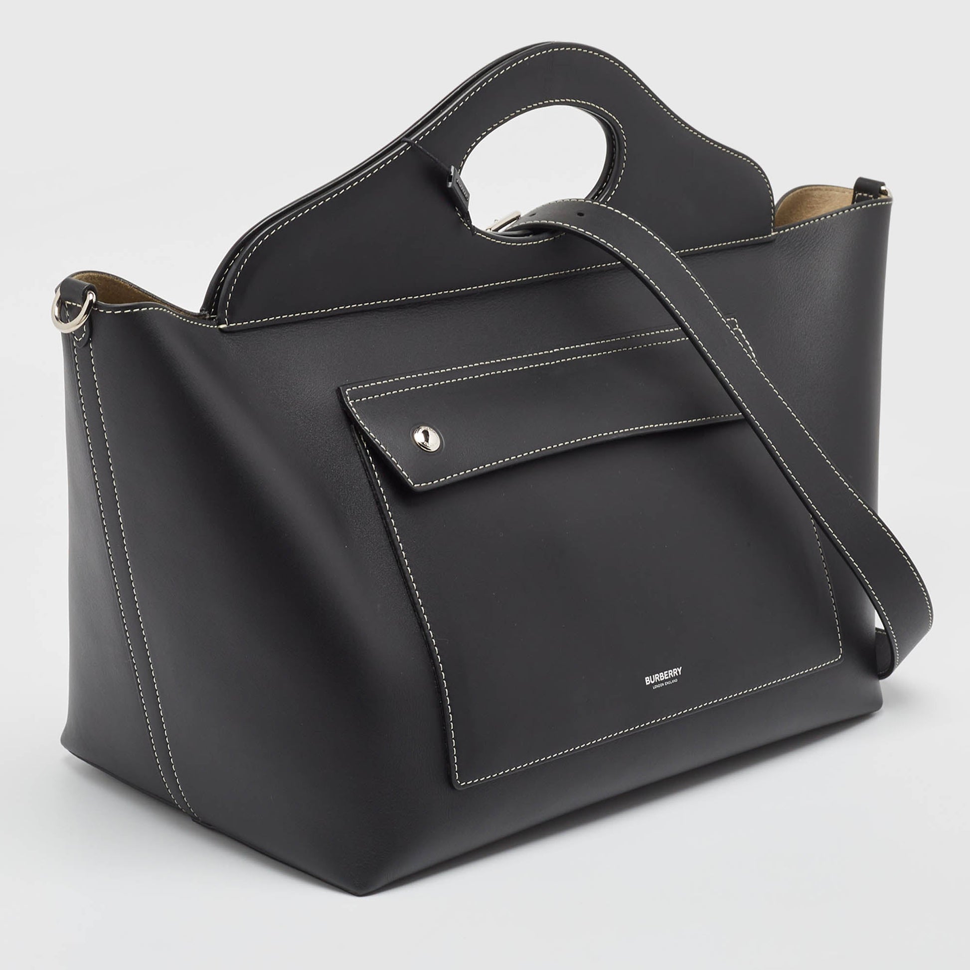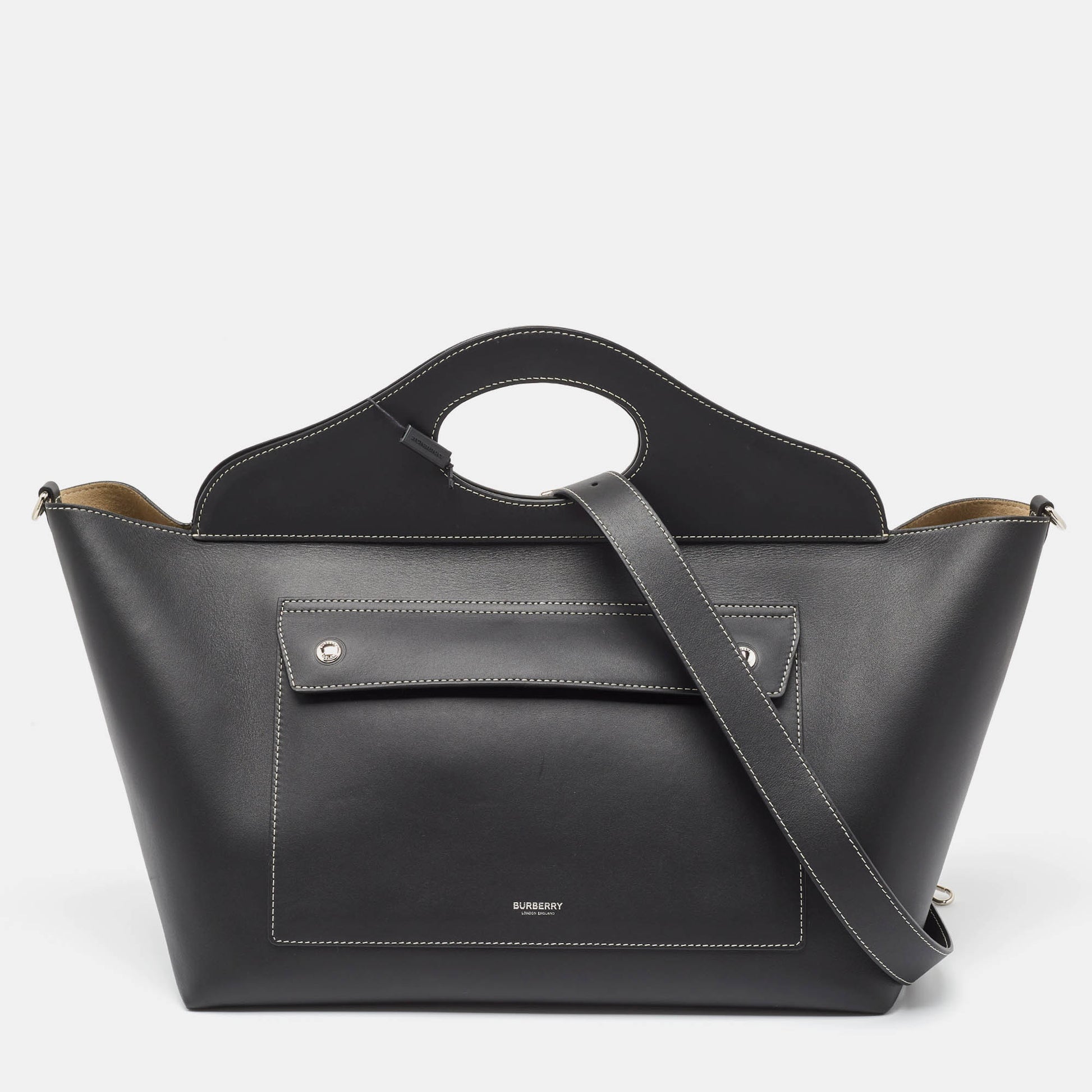 BURBERRY Black Leather Medium Soft Pocket Tote