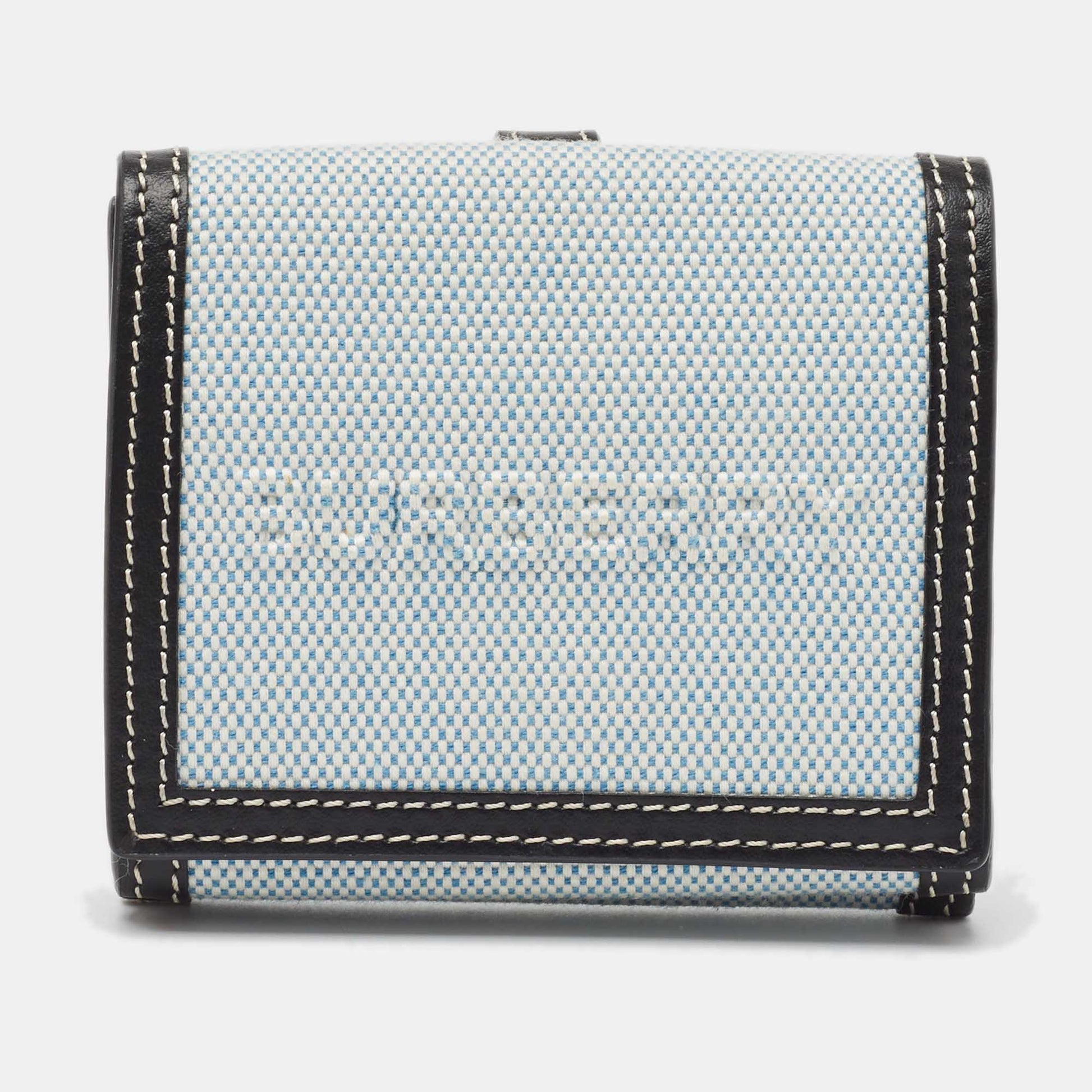 BURBERRY Blue/Black Canvas and Leather Luna Compact Wallet