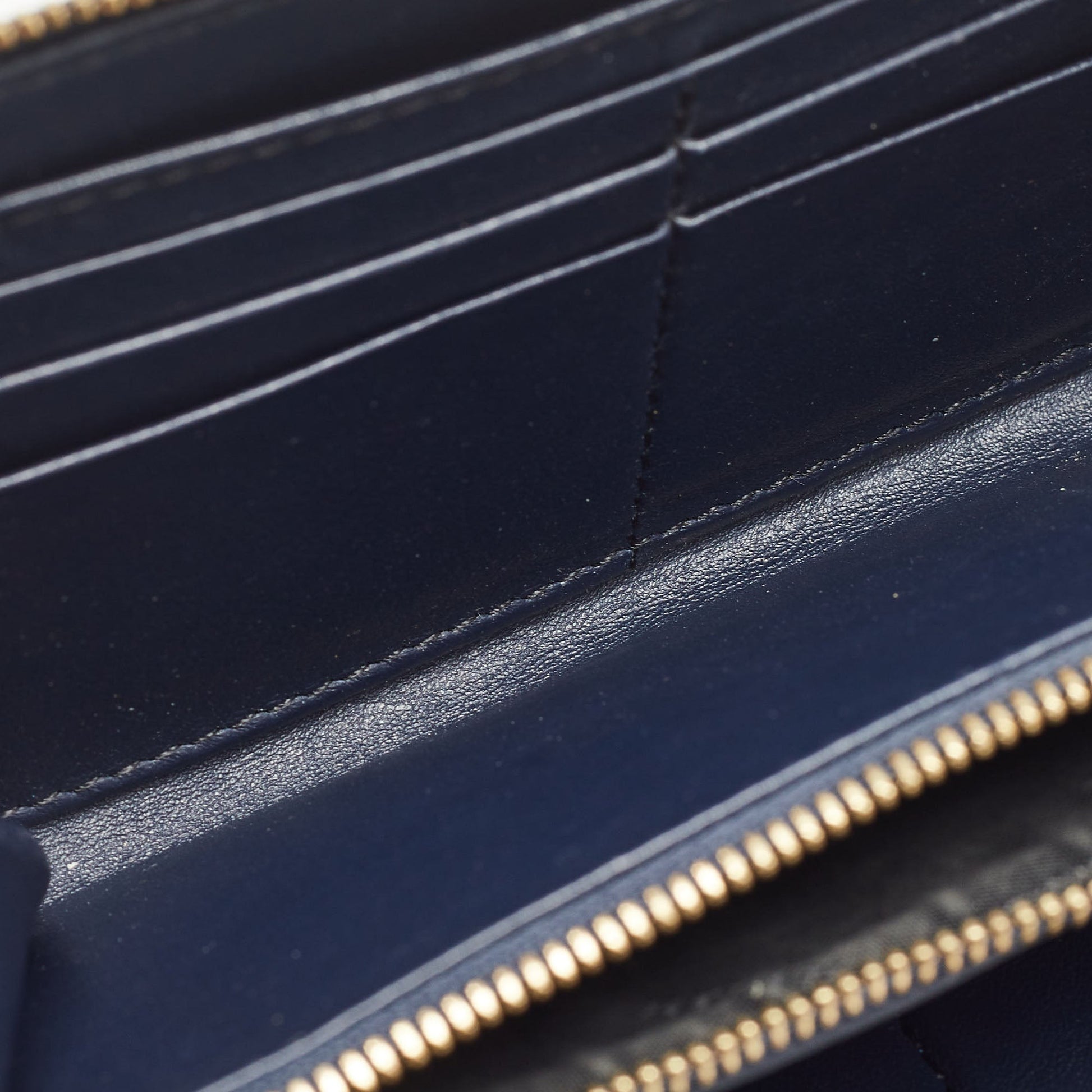 BURBERRY Navy Blue/Beige House Check Canvas and Leather Zip Continental Wallet