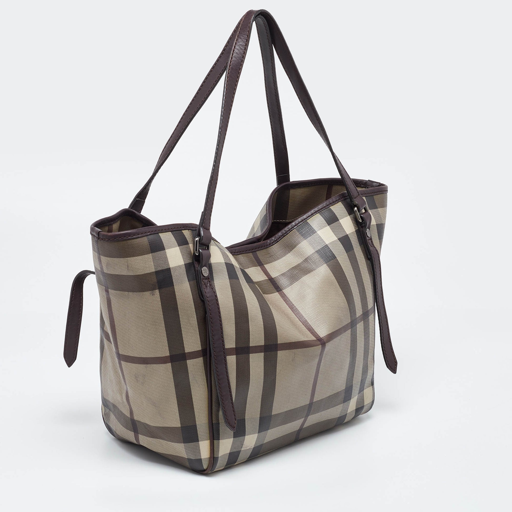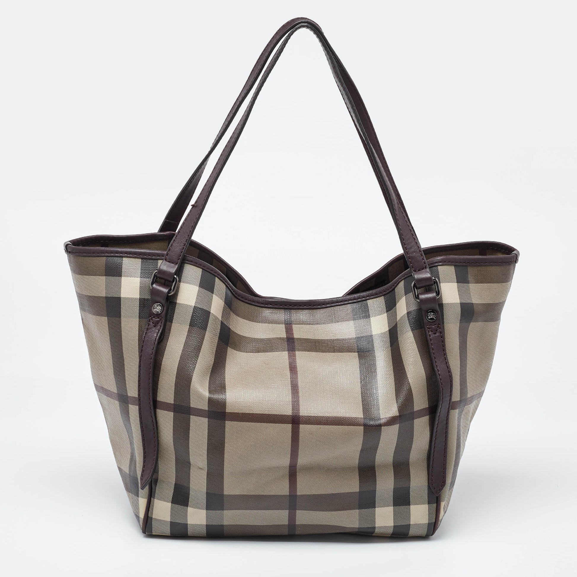 BURBERRY Smoked Check Coated Canvas and Leather Small Canterbury Tote