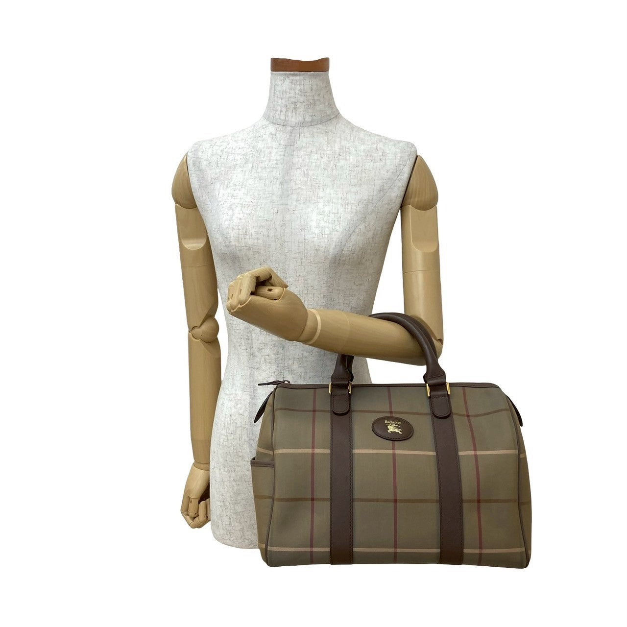 Burberrys Shadow Horse Logo Nova Check Canvas Leather Handbag