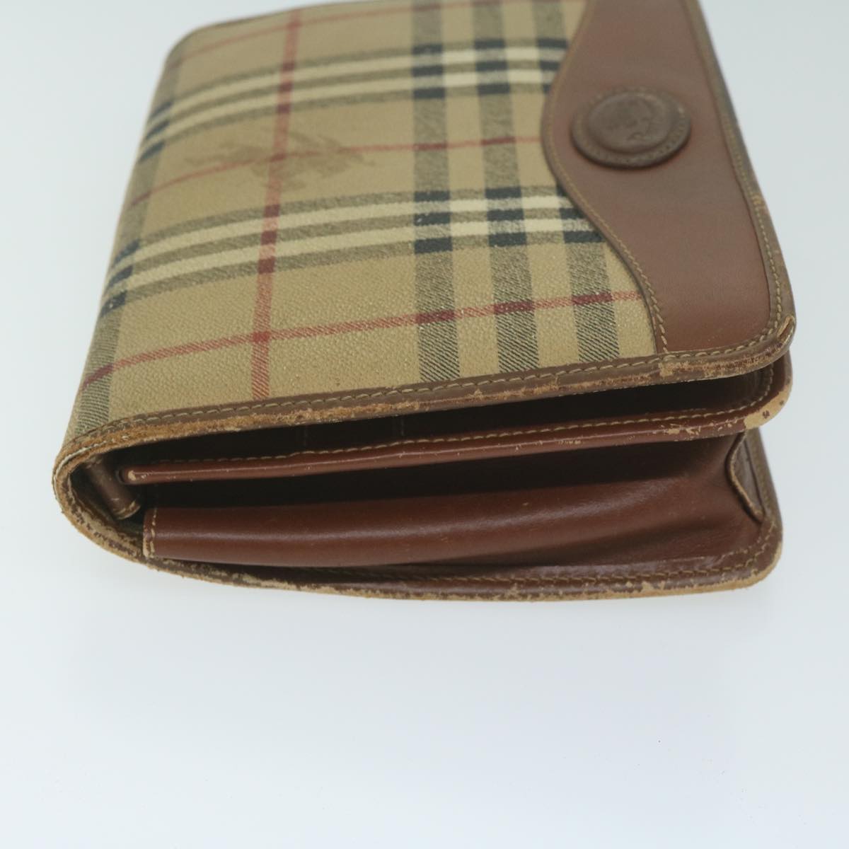 BURBERRYSs Nova Check Clutch Bag PVC Leather Beige Auth bs11501