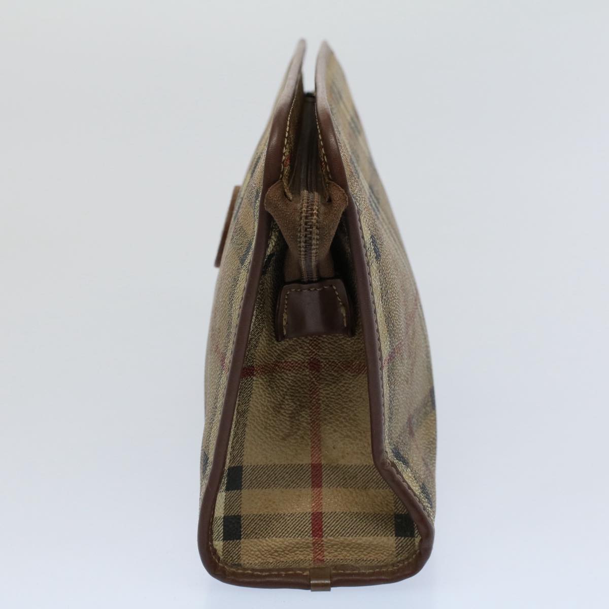 BURBERRYSs Nova Check Clutch Bag PVC Leather Beige Auth ti1243