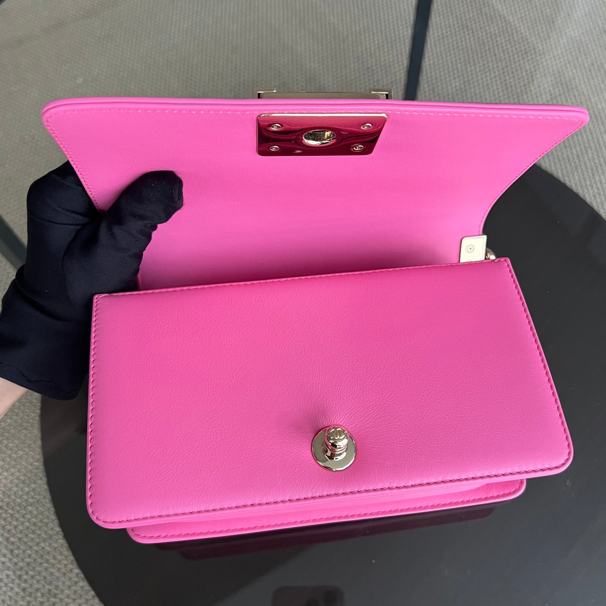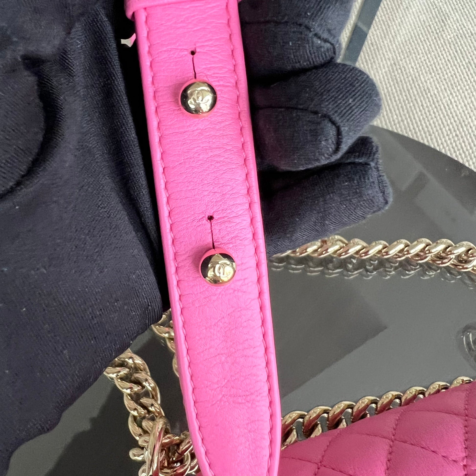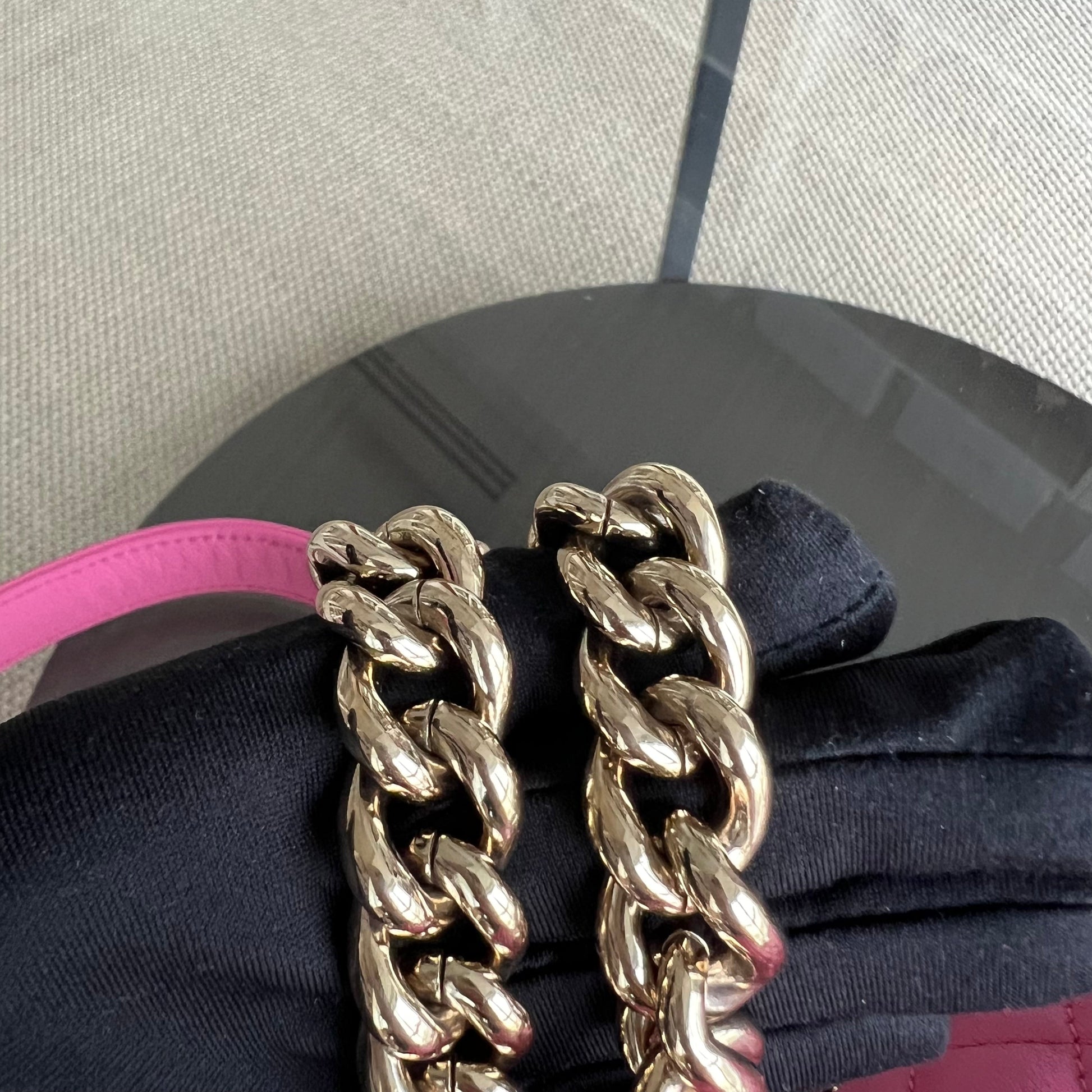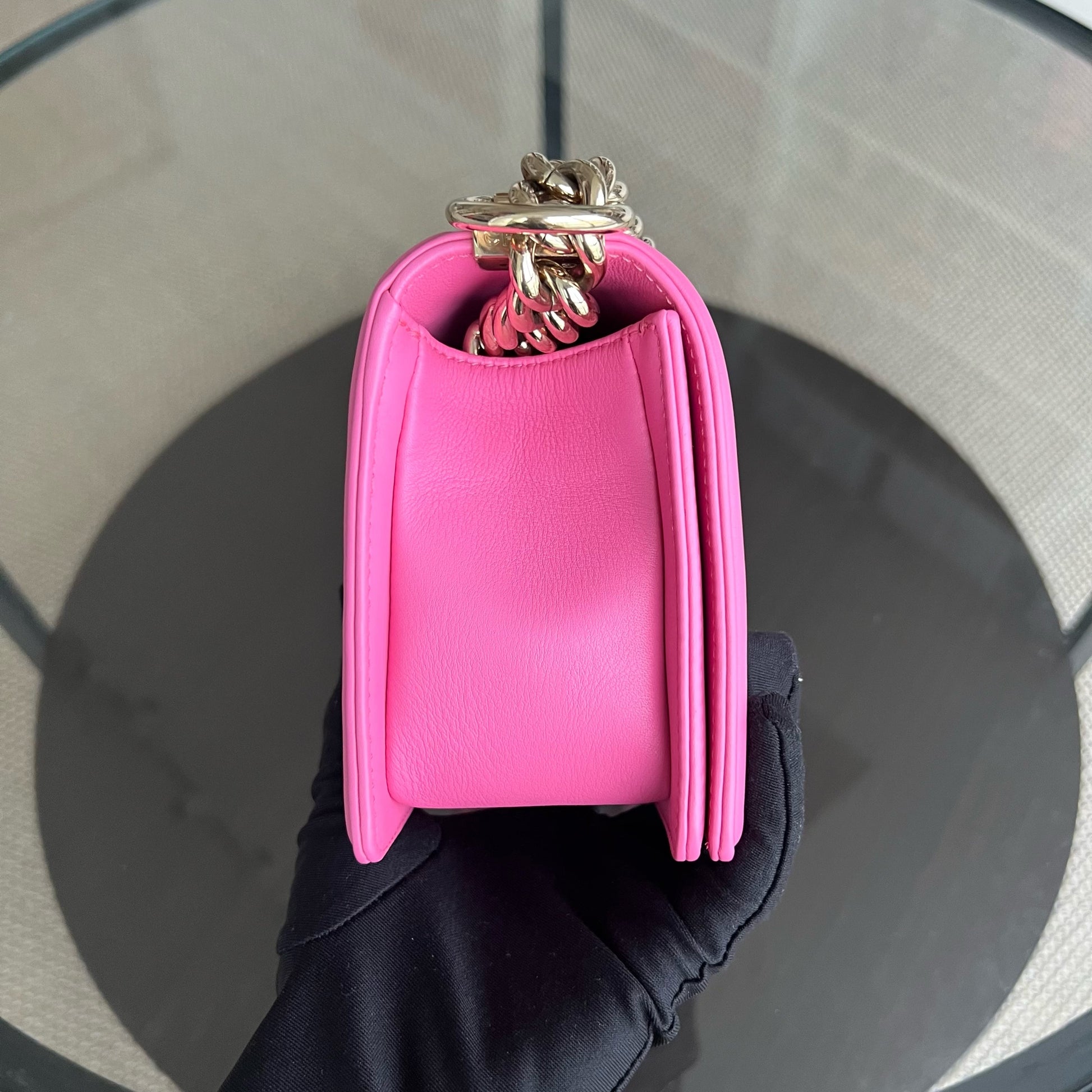 *Calfskin* Boy Small 20CM Quilted Calfskin Sakura Pink Leboy Golden Hardware Series 26
