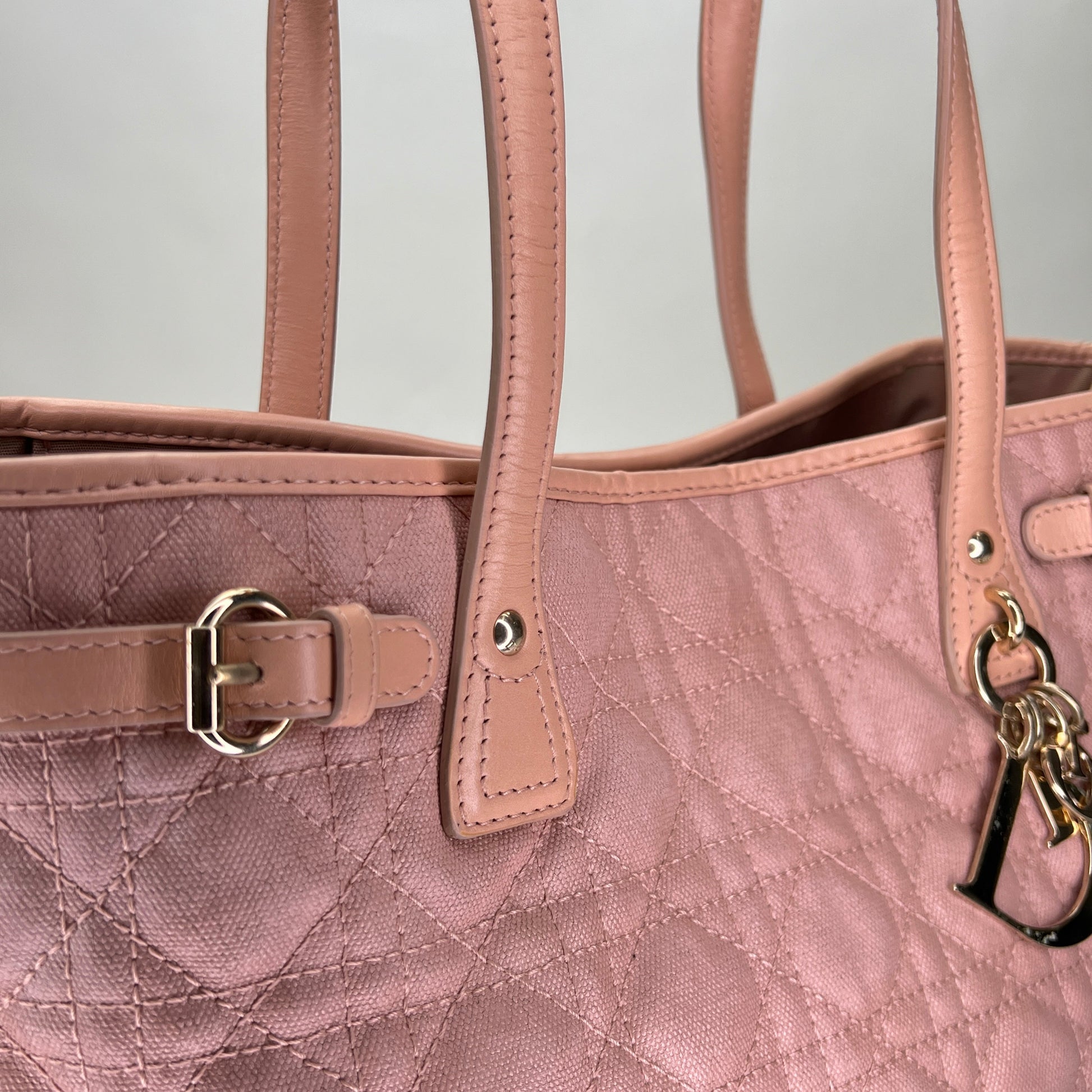Cannage Pink Tote Bag in Canvas, Gold hardware