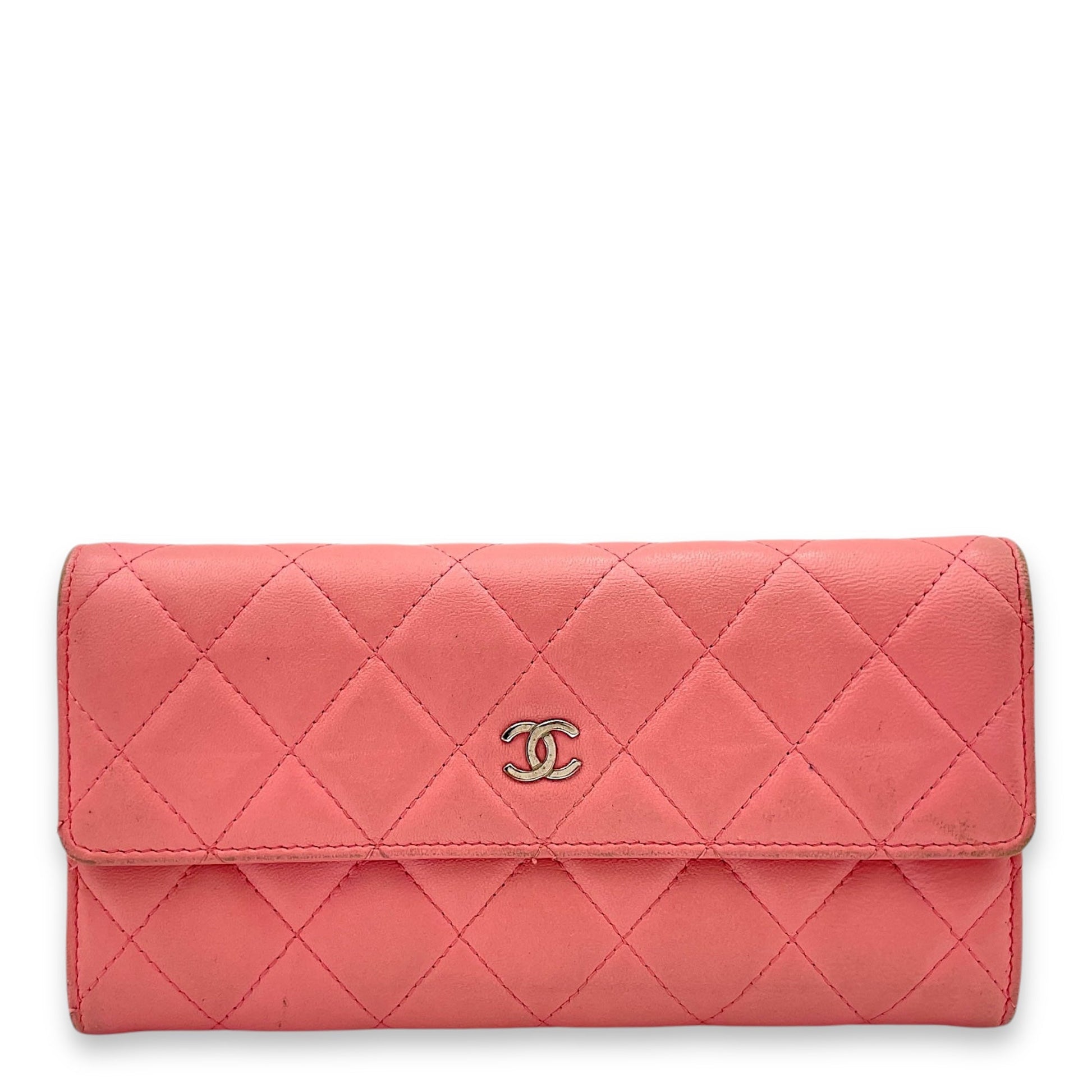 Chanel CC Quilted Flap Pink Wallet in Lambskin, Silver hardware Bags Wallet Pink Good Condition MEN UNISEX