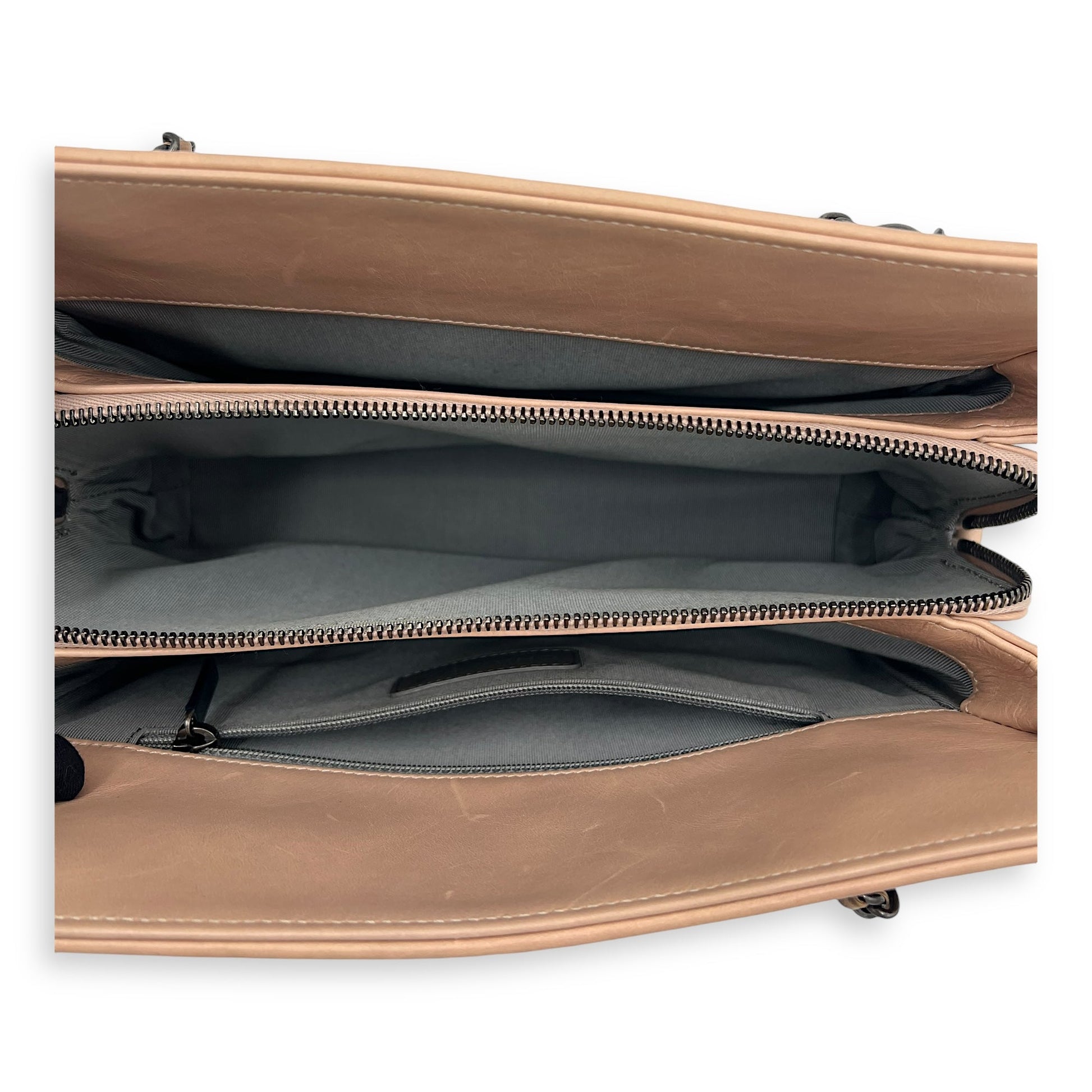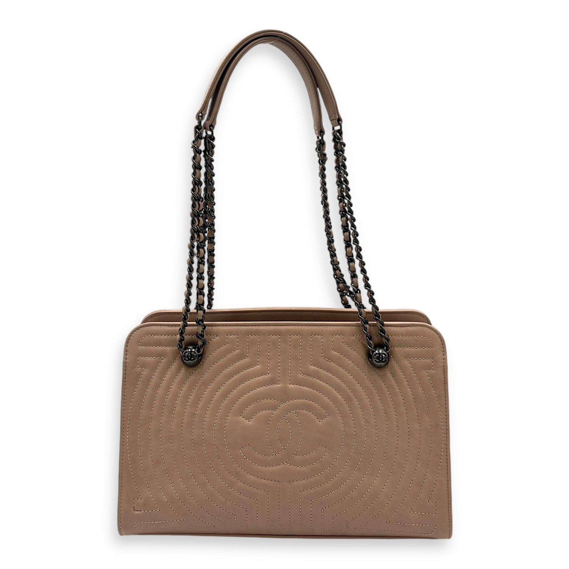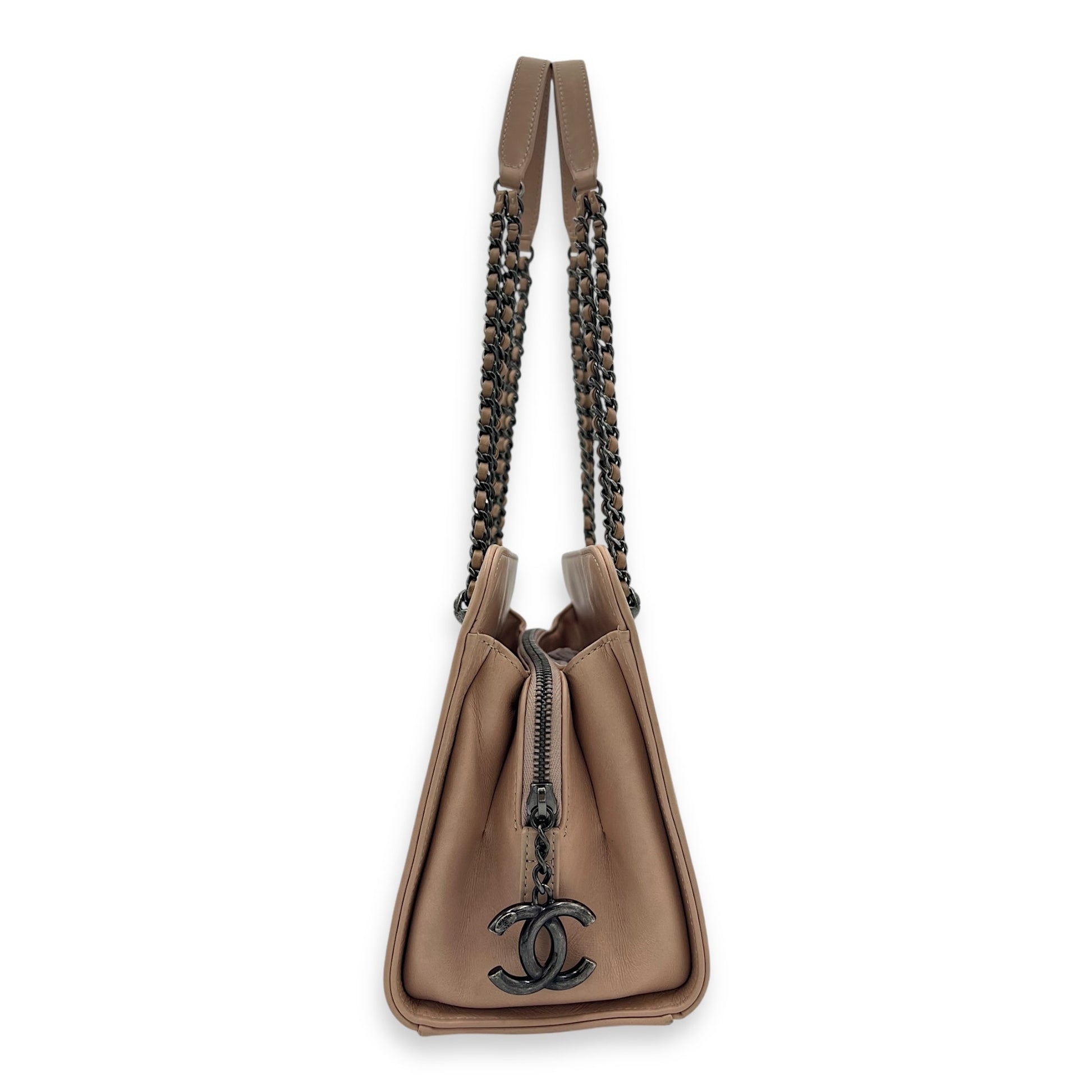 Bags Chanel CC Quilted Beige Tote Bag in Calfskin, Ruthenium hardware Good Condition Beige Tote Bag Women Lady Girl