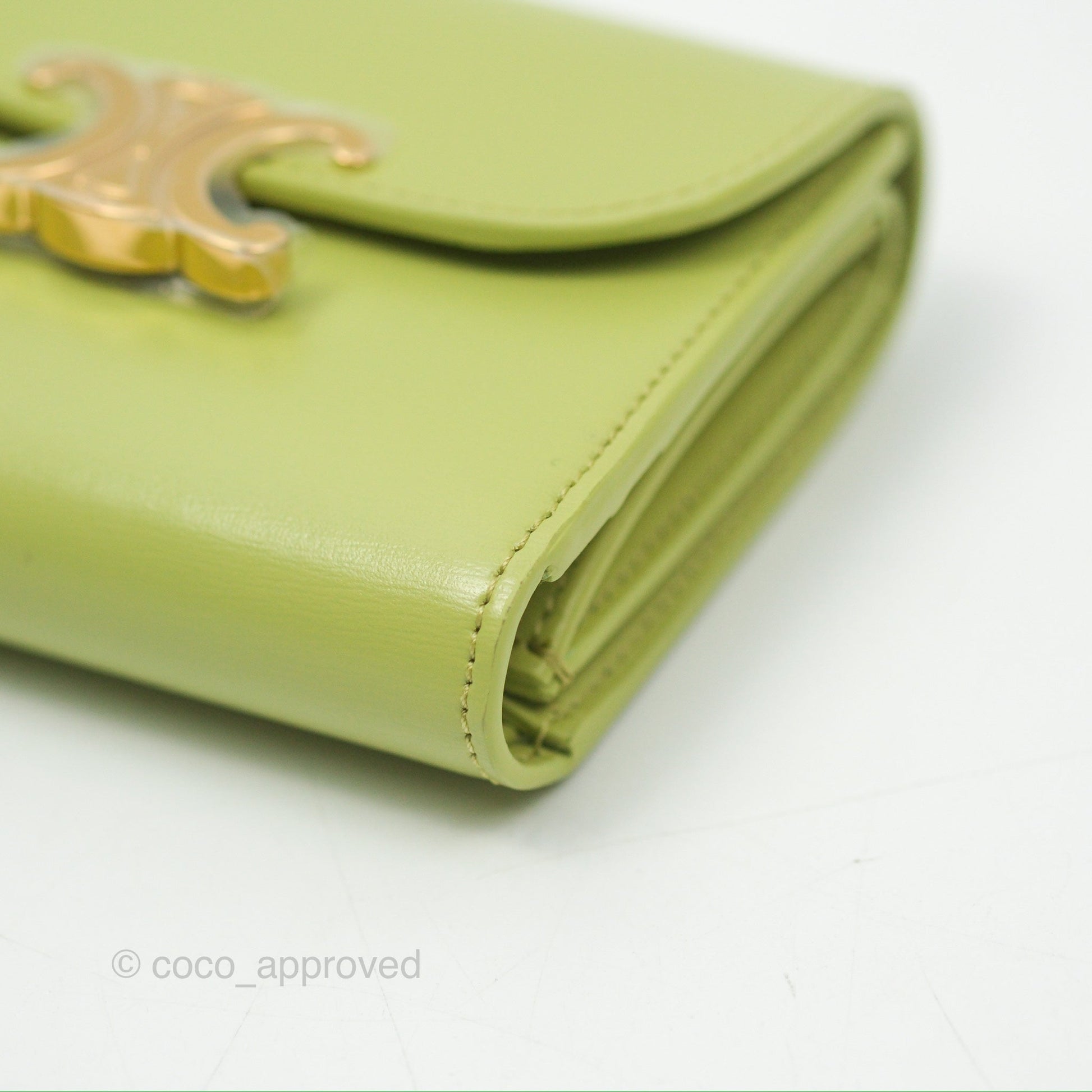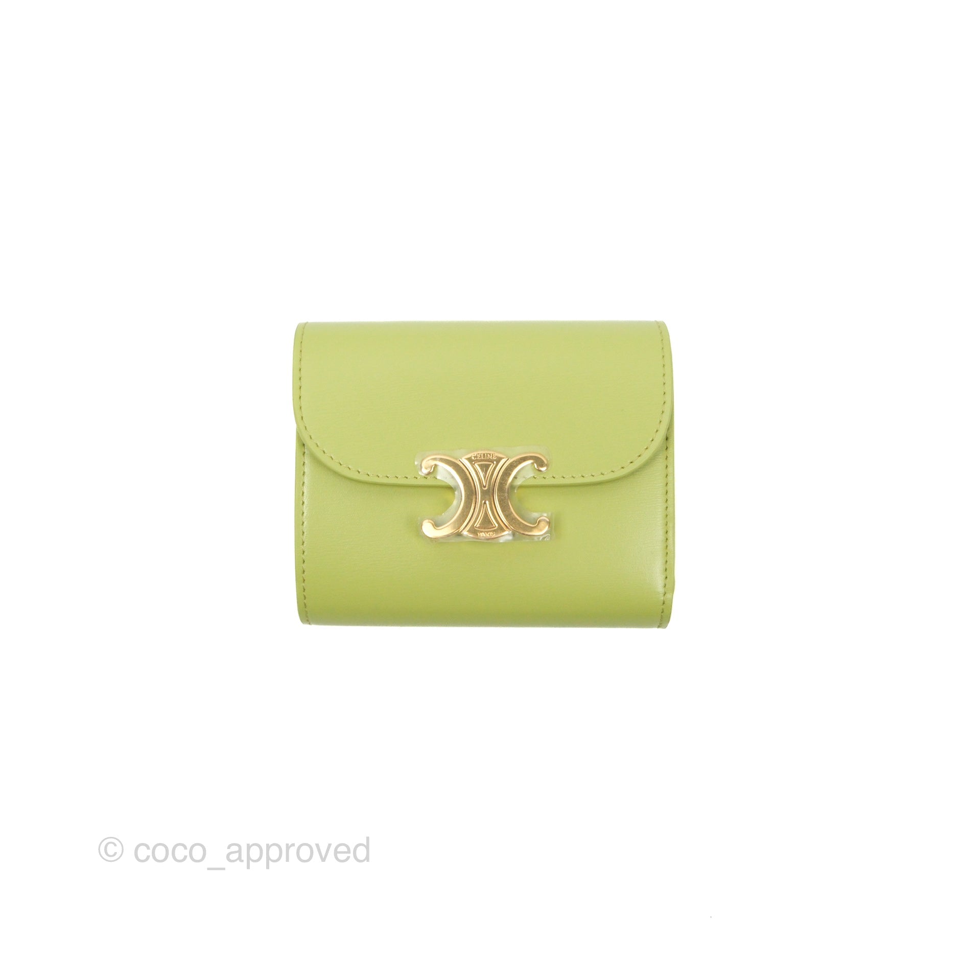 Celine Small Triomphe Flap Wallet Avocado Green Shiny Calfskin