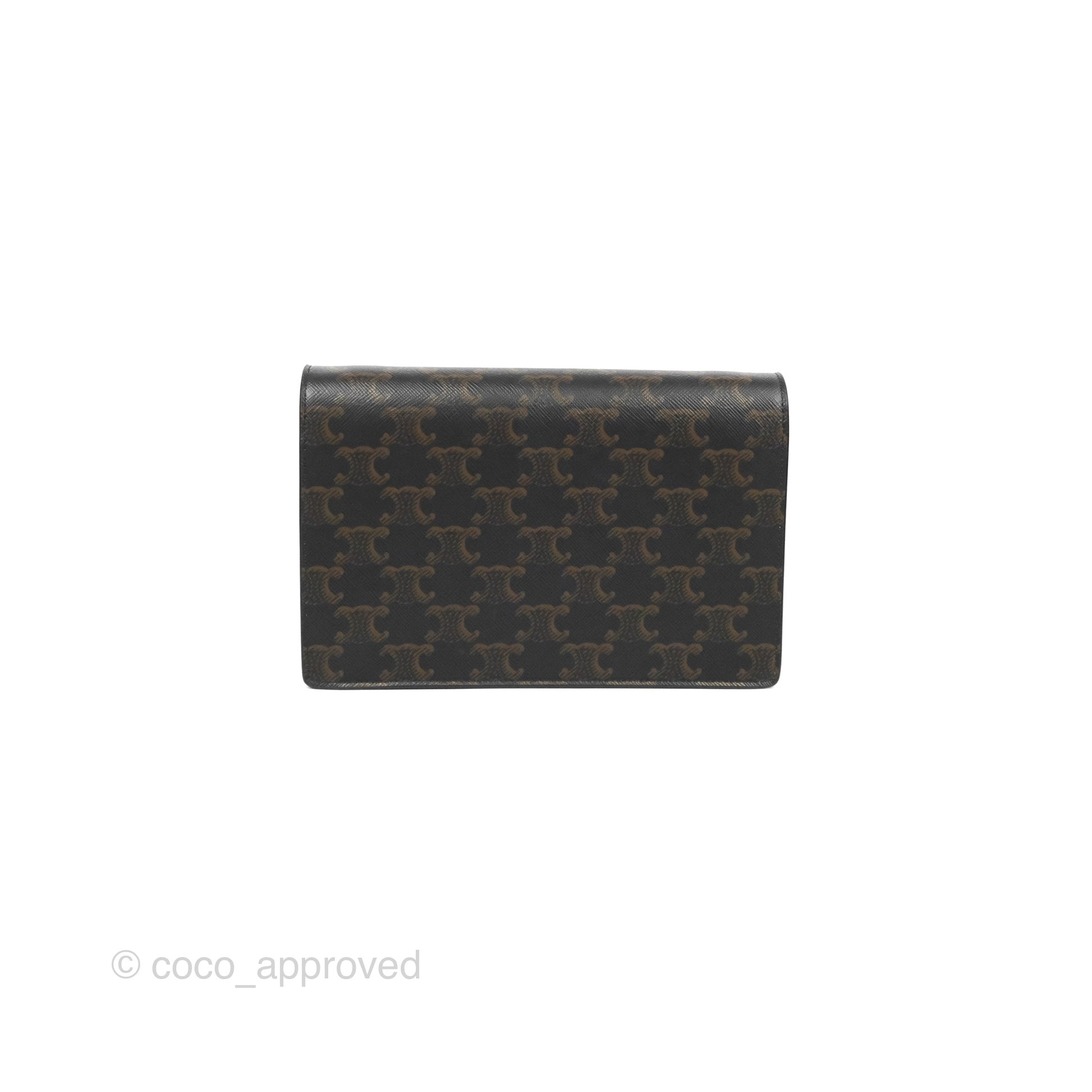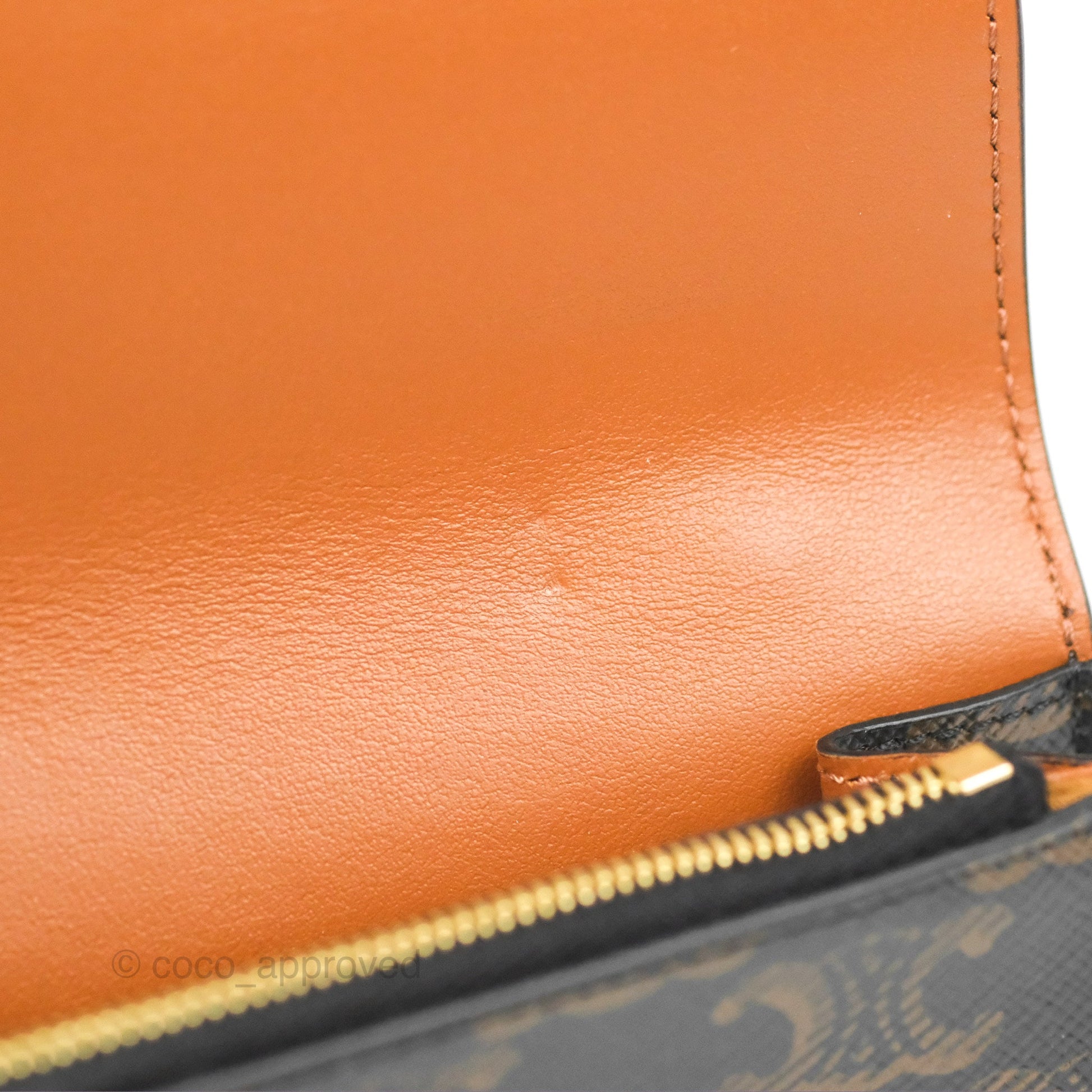 Celine Wallet On Strap Triomphe Canvas Tan Lambskin