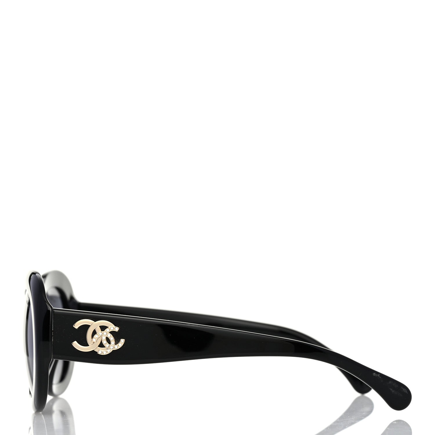 These Stunning Chanel sunglasses feature a retro oval style frame with crystal CC logo on both arms. The frames are Crafted of polished acetate.