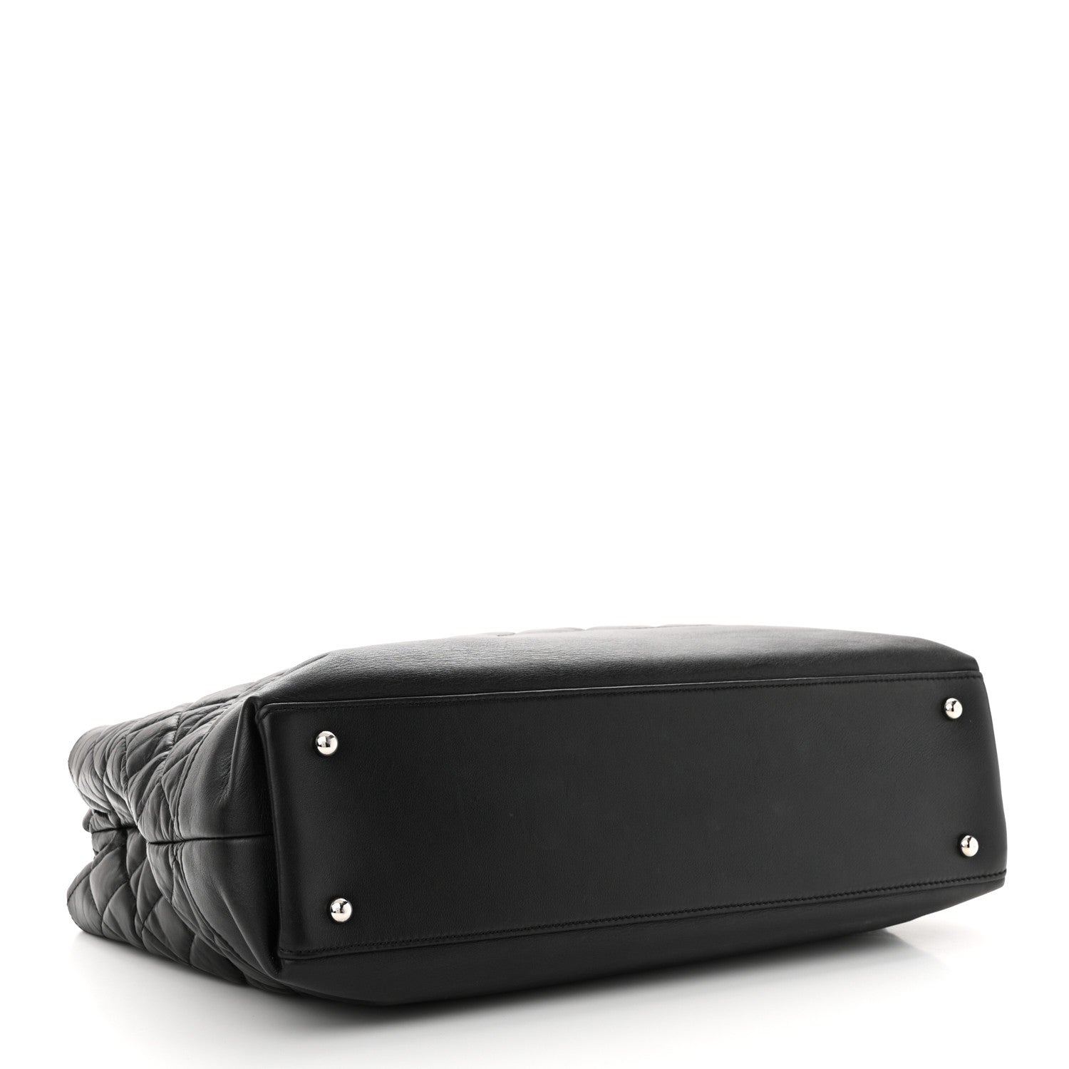 Indulge in timeless elegance with the Chanel Aged Calfskin Quilted Be CC Tote in classic black. Crafted from luxurious calfskin leather, this iconic tote features the signature diamond quilting and a chic CC logo on the front. The spacious interior is lined with smooth leather and includes multiple pockets for easy organization.