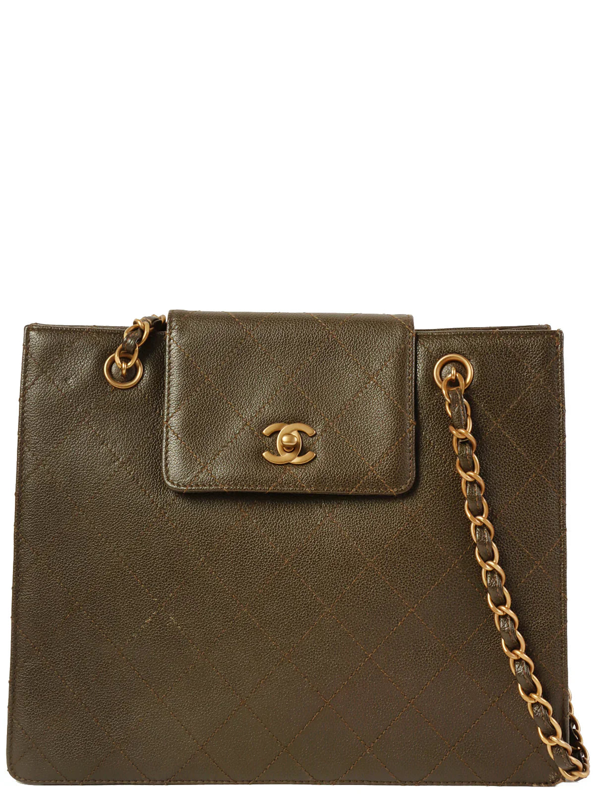 CHANEL Around 1998 Made Caviar Skin Turn-Lock Tote Bag Brown