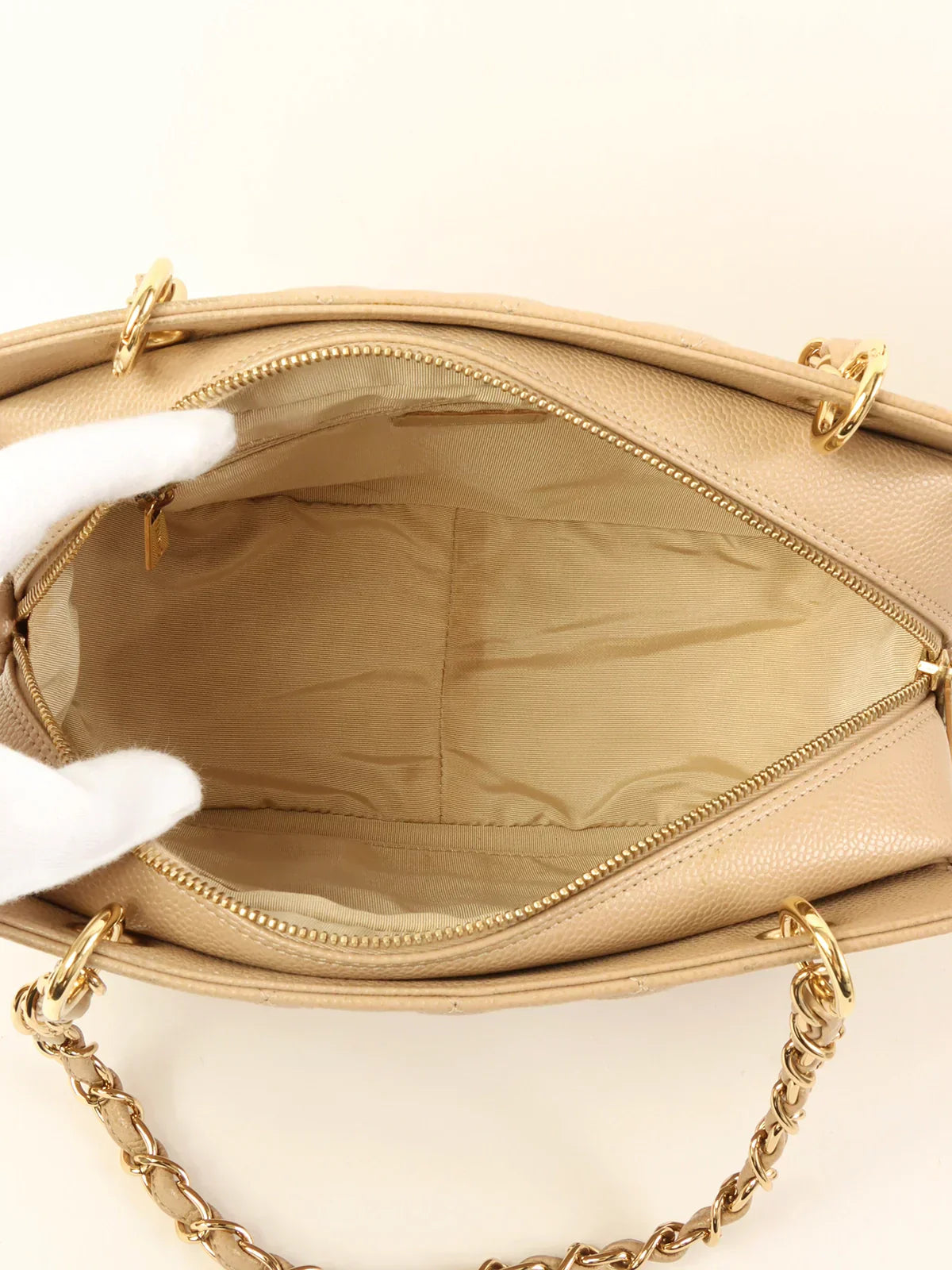 CHANEL Around 2001 Made Caviar Skin Cc Mark Stitch Chain Tote Bag Greige