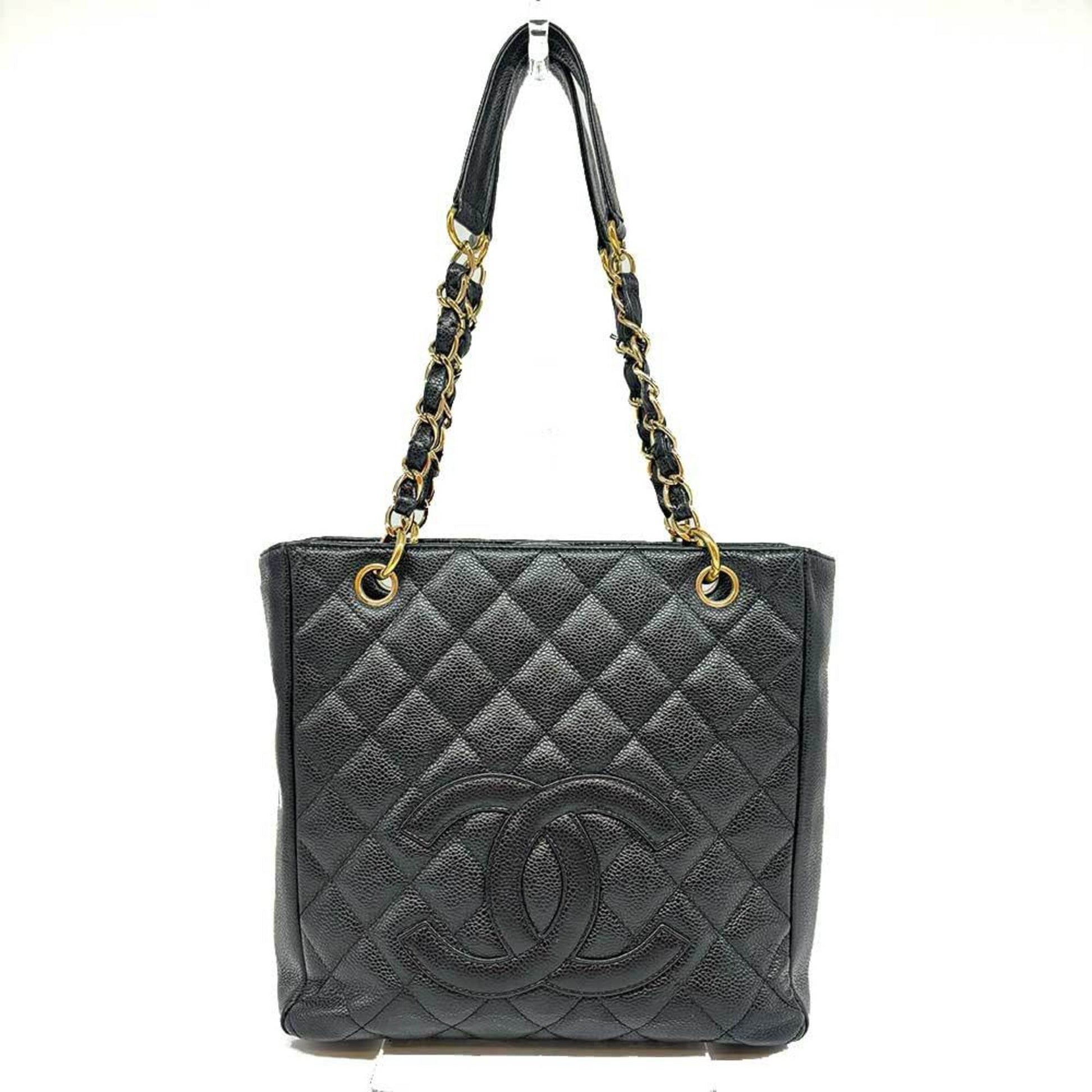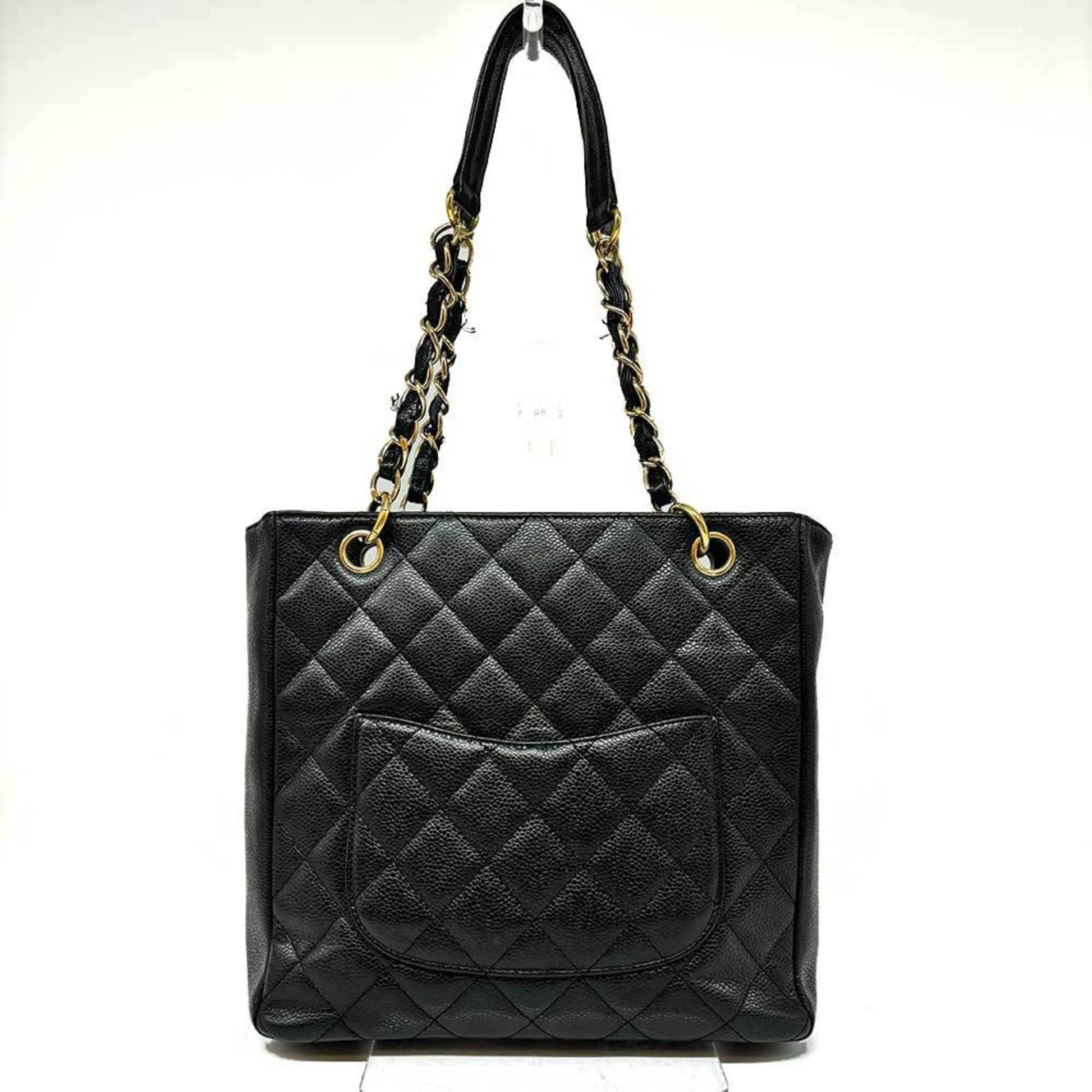 CHANEL Bag Caviar Skin Chain Shoulder PST Tote Leather Black
