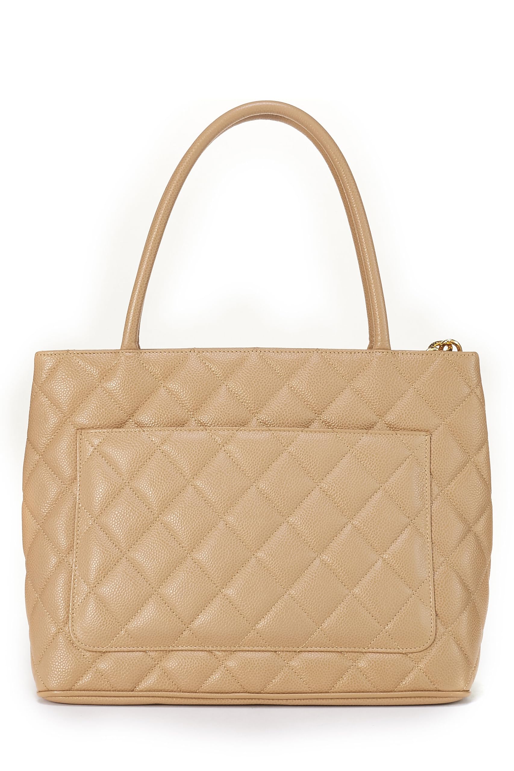Chanel, Beige Quilted Caviar Medallion Tote, Beige