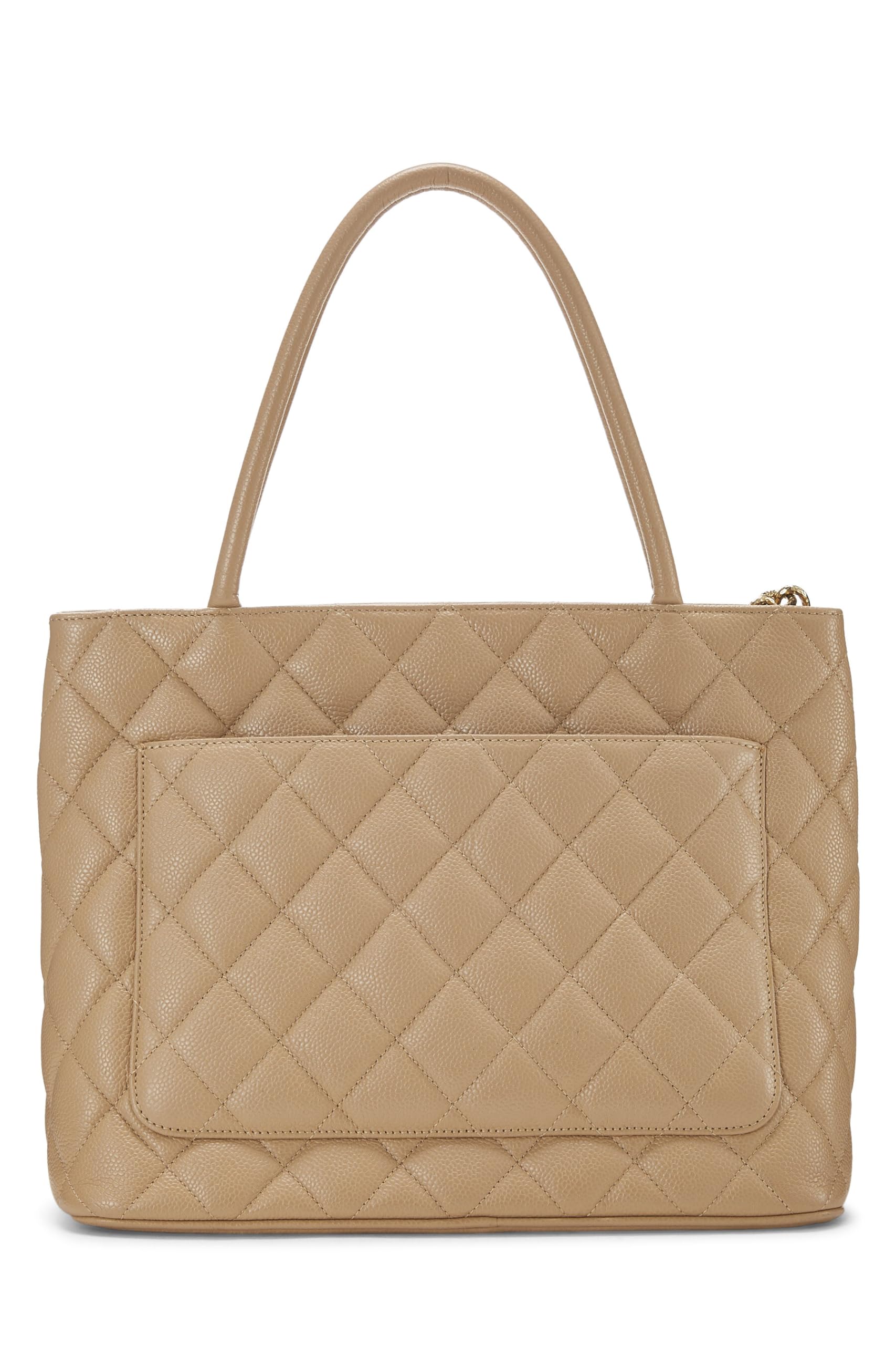 Chanel, Beige Quilted Caviar Medallion Tote, Beige
