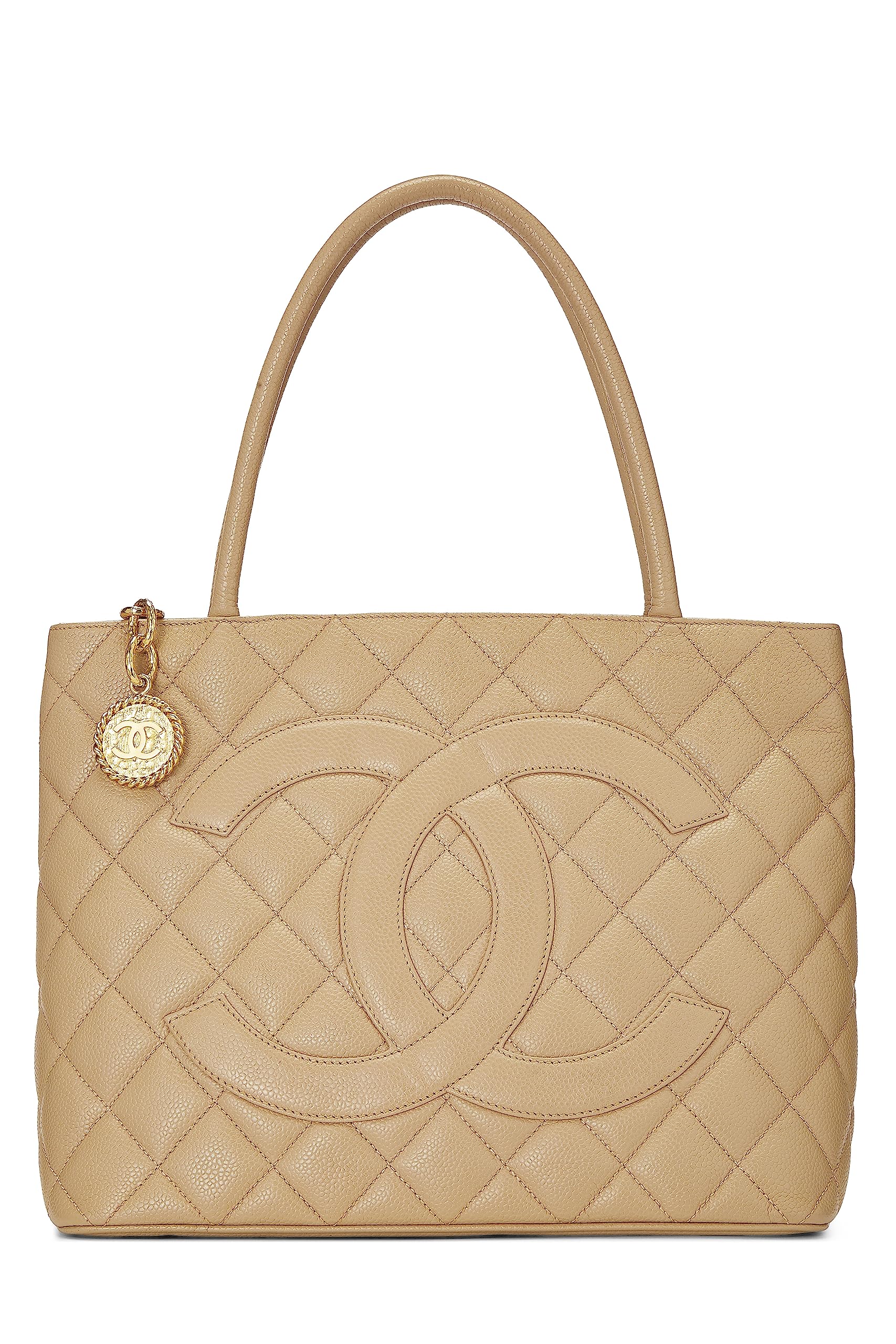 Chanel, Beige Quilted Caviar Medallion Tote, Beige