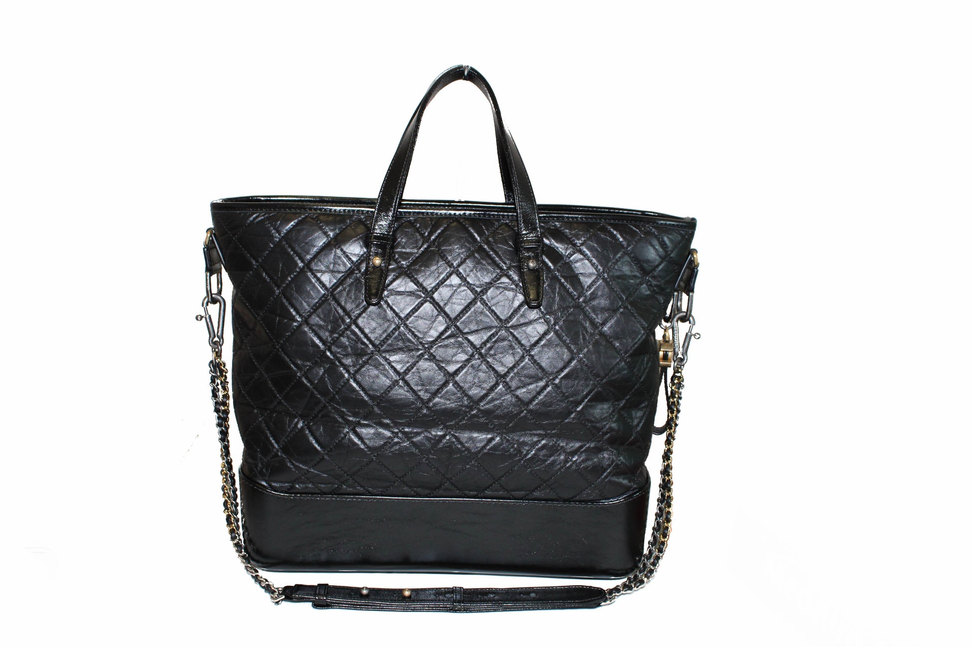Chanel Black Aged Calfskin Quilted Large Gabrielle Shopping Tote