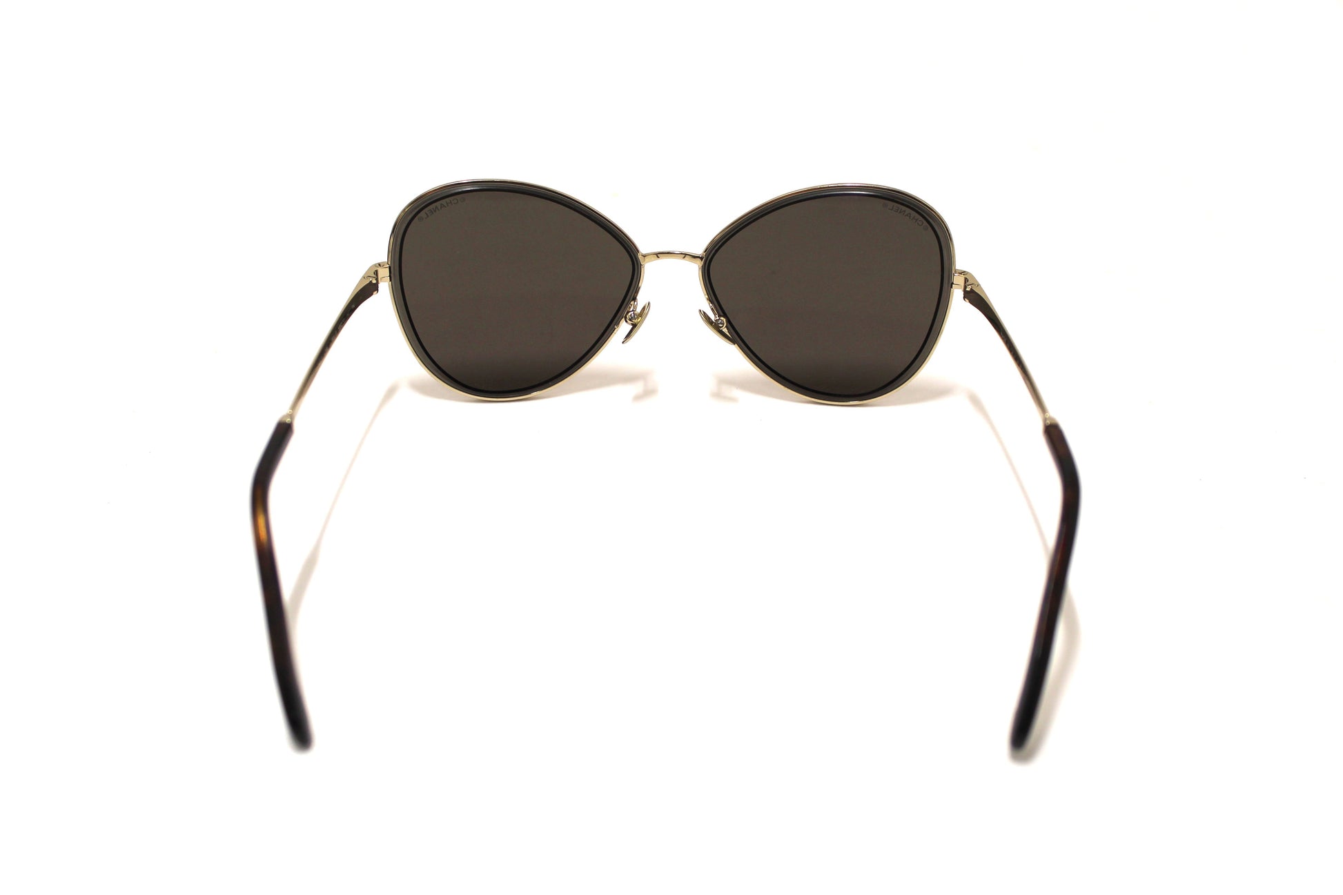 Gold tone rimmed frame and temple, with tortoise shell temple tip