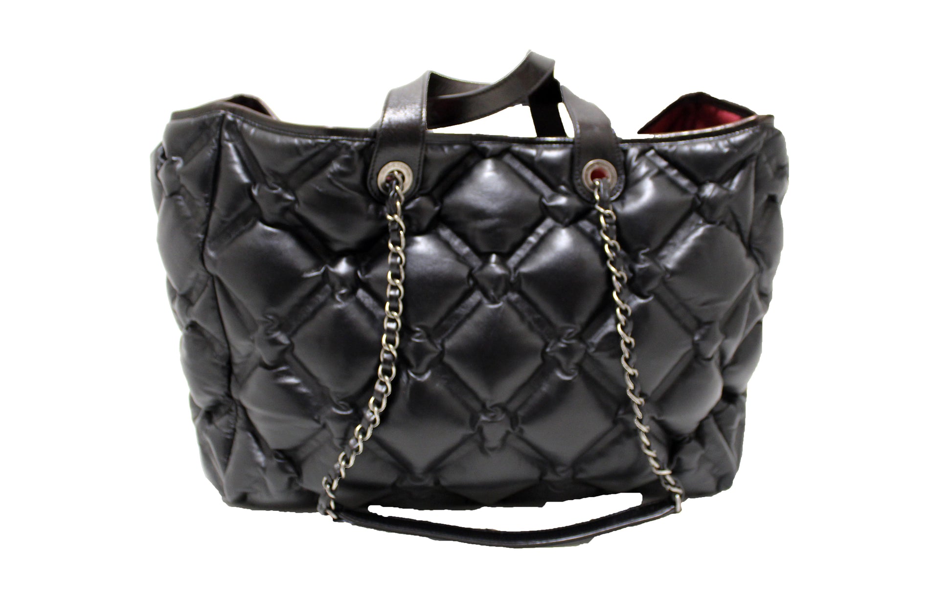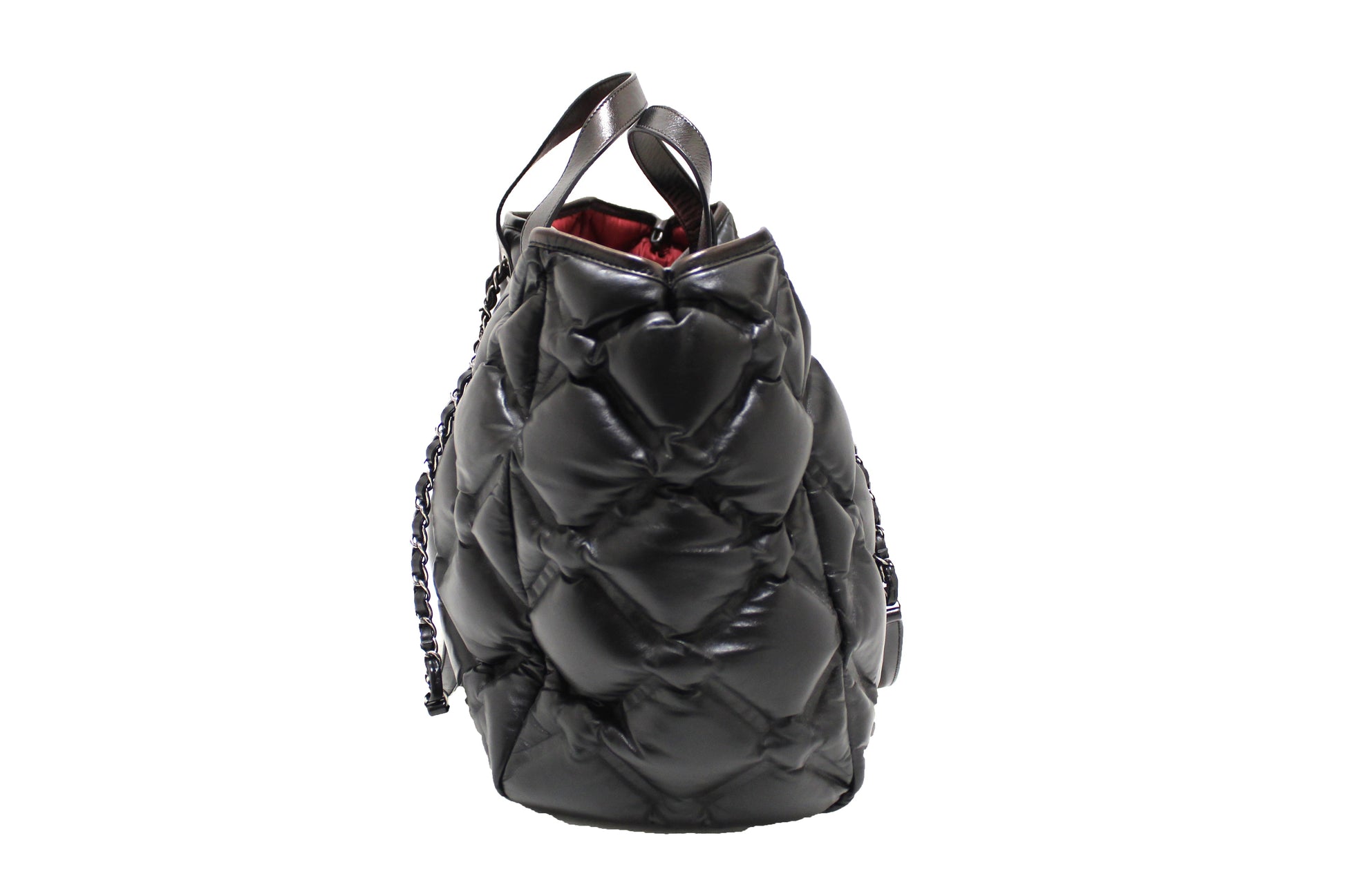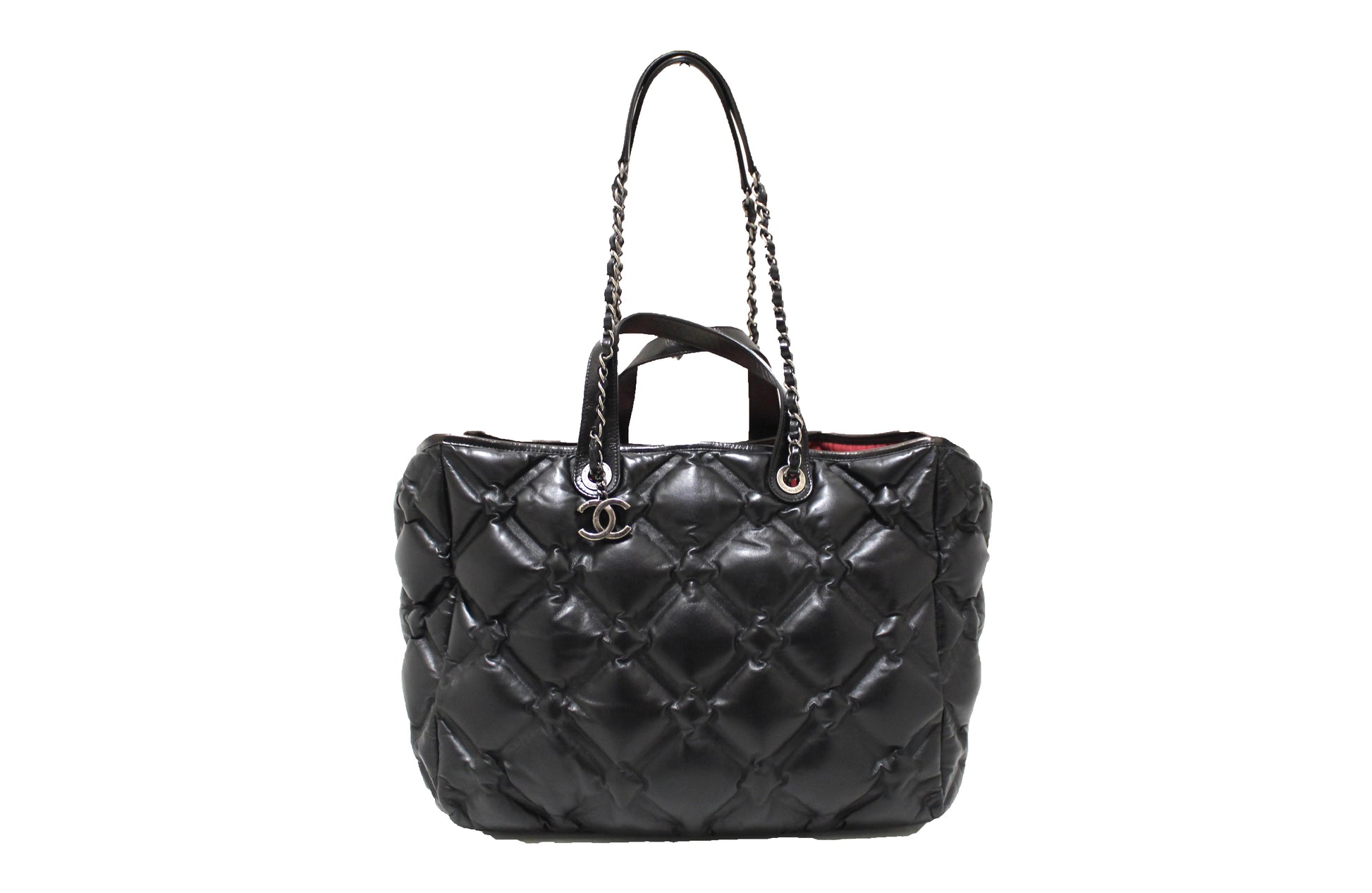 Chanel Black Bubble Quilted Lambskin Leather Large Tote