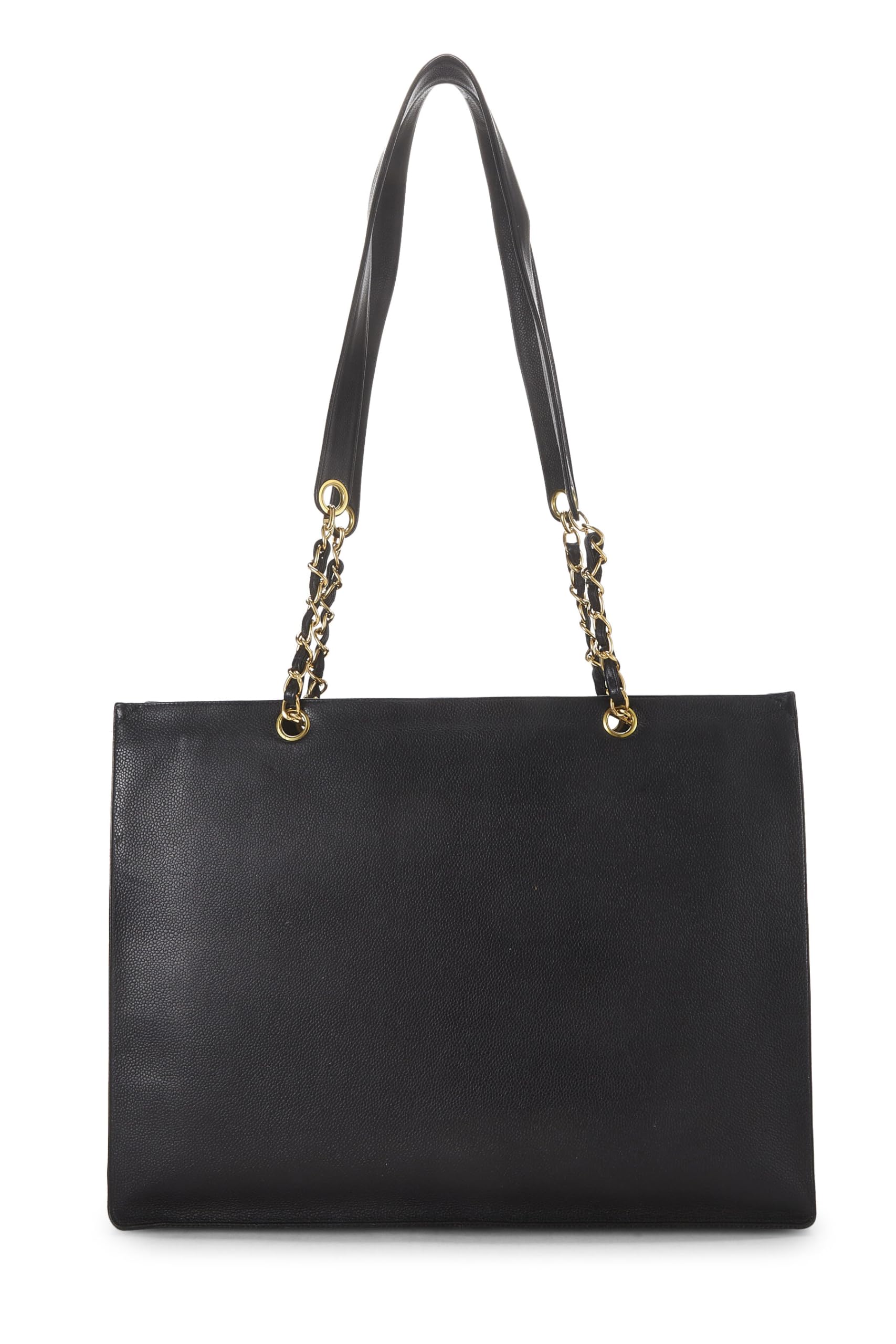 Chanel, Black Caviar Flat Chain Tote Large, Black
